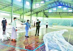 ဧရာဝတီတိုင်းဒေသကြီး ဟင်္သာတခရိုင် လေးမျက်နှာမြို့၌ ကိုဗစ် -၁၉ ရောဂါ ကြိုတင် ကာကွယ်၊ ထိန်းချုပ်၊ ကုသရေး တာဝန်ရှိသူများက အားကစားခန်းမတွင်Quarantine Center…