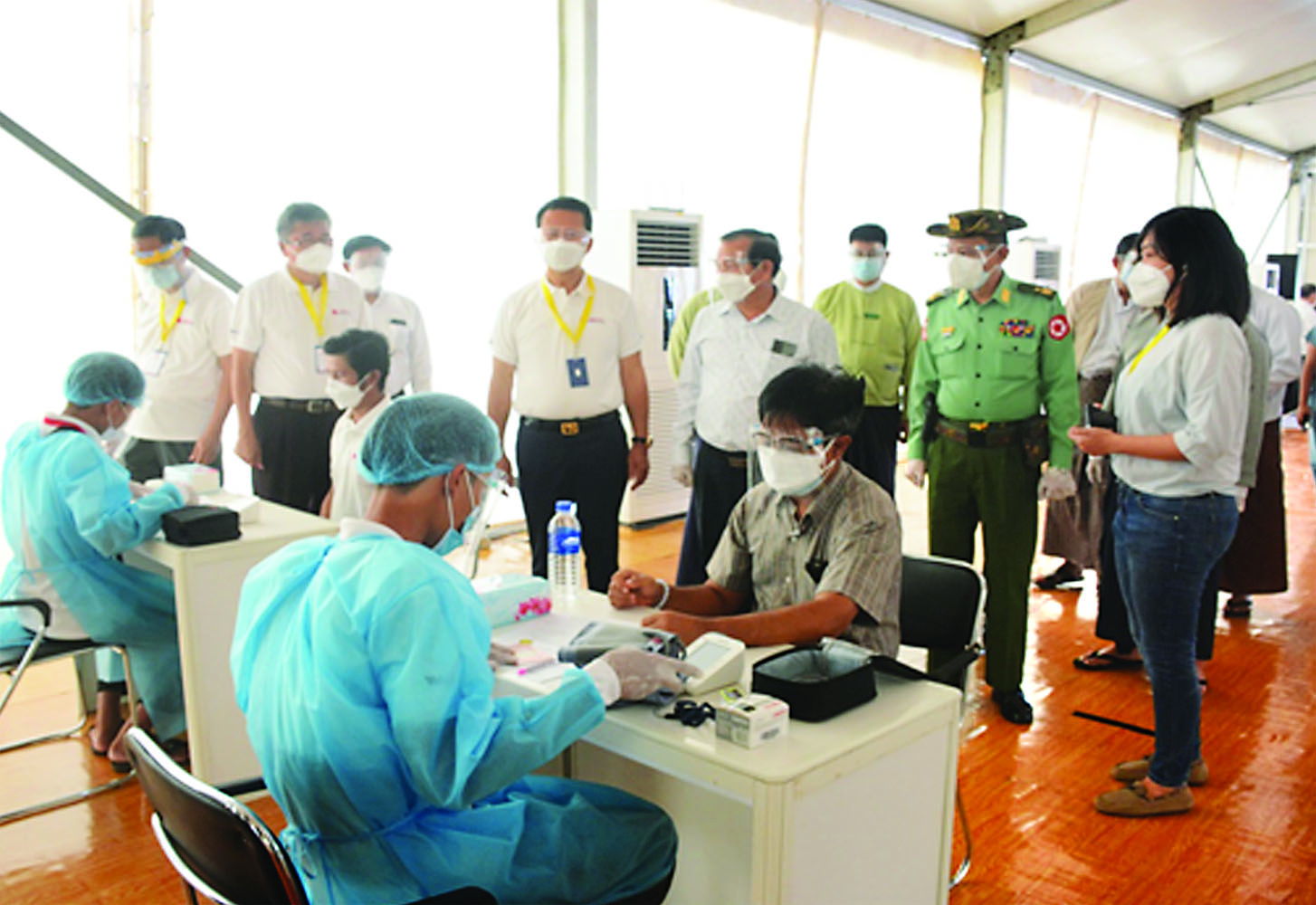 သုဝဏ္ဏဘူမိ Event Park ၌ ကိုဗစ်-၁၉ ရောဂါ ကာကွယ်ဆေးထိုးနှံရေး  စင်တာဖွင့်လှစ်ရန် ပြင်ဆင်ဆောင်ရွက်ထားရှိမှုများ ကြည့်ရှုစစ်ဆေး
