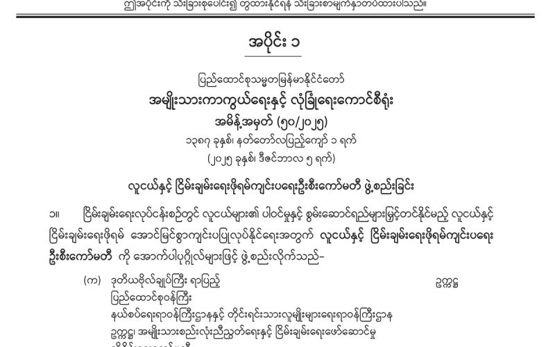 အပိုင်း (၂) တွင် အထွေထွေအုပ်ချုပ်ရေးဦးစီးဌာန အမိန့်ကြော်ငြာစာတို့ ပါဝင်ပါသည်။