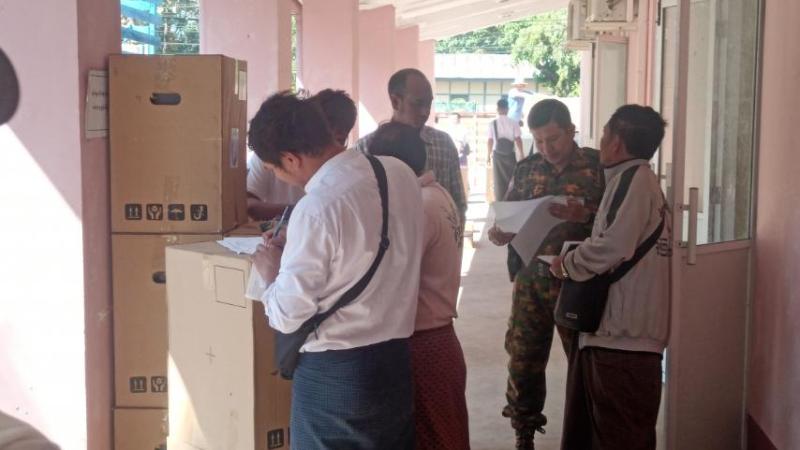 ပါတီစုံဒီမိုကရေစီအထွေထွေရွေးကောက်ပွဲ အပိုင်း(၂)အတွက် လှိုင်းဘွဲမြို့နယ်ရှိ မဲရုံများအတွက် မဲပေးစက်များထုတ်ယူ