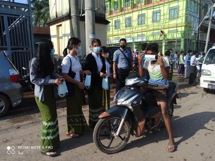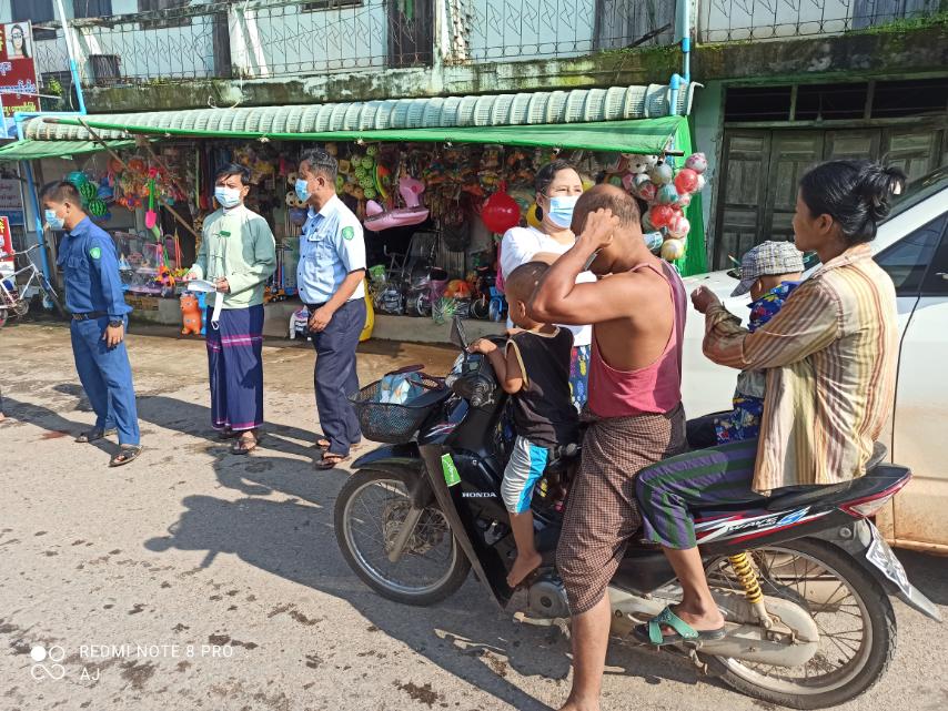 ထိုသို့ပြုလုပ်ရာတွင် ပြည်သူများအနေဖြင့် ကိုဗစ်-၁၉အိုမီခရွန်န်မျိုးကွဲ B4B5ရောဂါပိုး ကြိုတင်ကာကွယ်ရေးအတွက် မြို့နယ်စီမံအုပ်ချုပ်ရေးကောင်စီ ဥက္ကဋ္ဌဦးကျော်ကျော်ဦး ဦးဆောင်၍ မြို့နယ်အထွေထွေ အုပ်ချုပ်ရေးဦးစီးဌာနဝန်ထမ်းများ၊ မြန်မာ့နိုင်ငံရဲတပ်ဖွဲ့ ဝင်များ၊ မြို့နယ်စည် ပင်သာယာရေး အမှုဆောင်အရာရှိနှင့် ဝန်ထမ်းများ၊ ခရိုင်ပြန်ဆက်ဦးစီးဌာနမှ ဝန်ထမ်းများ၊ မီးသတ်တပ်ဖွဲ့ဝင်များ၊ ခရိုင်ဘေးအန္တရာယ် စီမံခန့်ခွဲမှုဦးစီးဌာန ဝန်ထမ်းများတို့မှ လူစည်ကားရာ လမ်းဆုံလမ်းထောင့်နှင့် မြို့မစျေးရှေ့တို့တွင်သွားလာနေကြသည့် ပြည်သူများအား mask နှာခေါင်းစည်းတပ်ဆင်၍သွားလာရေး အသိပေးနှိုးဆော်ပြီး mask များကို အခမဲ့ဖြန့်ဝေပေးခဲ့ကြောင်းသိရသည်။