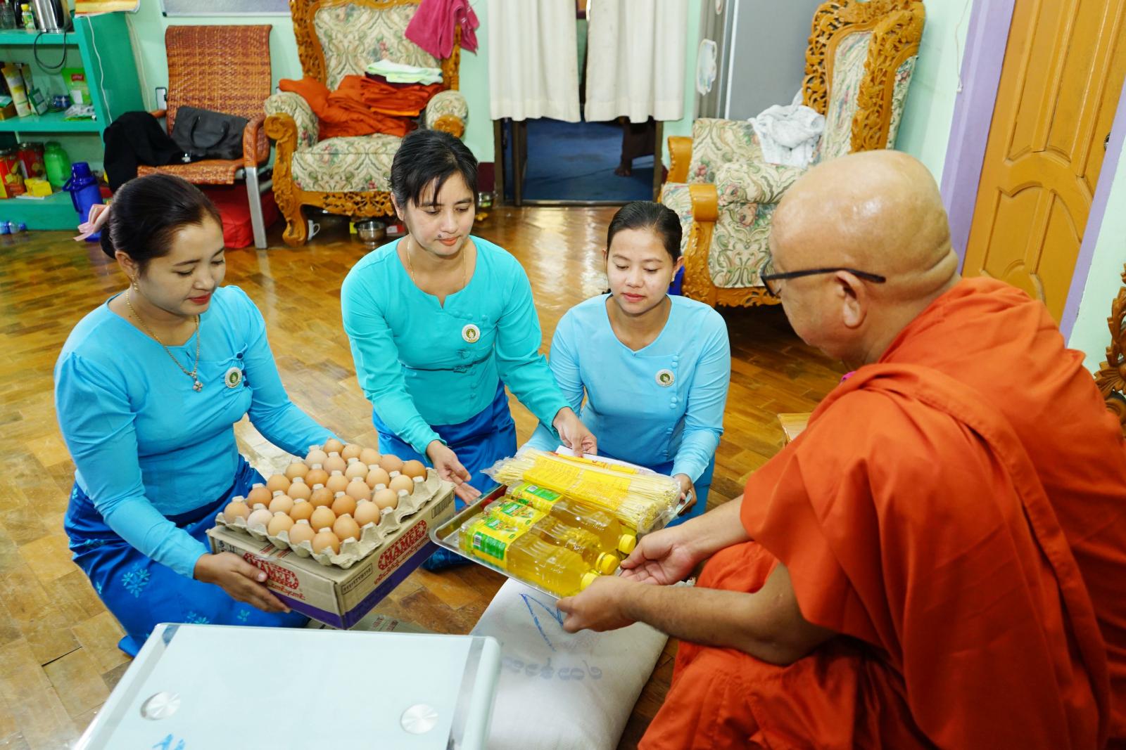 ထိုသို့ လှူဒါန်းရာတွင် မောင်တောခရိုင်အမျိုးသမီးရေးရာအဖွဲ့ဥက္ကဋ္ဌ ဒေါ်ခင်စန္ဒာဝင်း ဦးဆောင်၍ အဖွဲ့ဝင်များ၊ မိခင်နှင့် ကလေးစောင့်ရှောက်ကြီးကြပ်မှုအဖွဲ့ဝင်များက (၄၈)နှစ်မြောက် ရခိုင် ပြည်နယ်နေ့ကို ကြိုဆိုဂုဏ်ပြုသောအားဖြင့် မောင်တောမြို့အတွင်းရှိ မြို့မကျောင်းတိုက်၊ အလိုတော်ပြည့်ကျောင်း၊ ဗဟိုလ်ကျောင်း၊ သန္တိသုခတောရကျောင်း၊ ဝေသာလီကျောင်းများရှိ ကျောင်းထိုင် ဆရာတော်ကြီးများအား ဖူးမျှော်ကြည်ညိုကာ ဆွမ်းဆန်တော် ၊ စားဆီ ၊ ခေါက်ဆွဲ ၊ ကြက်ဥ၊ လက်ဖက်ရည်ထုတ်များအား ဆက်ကပ်လှူဒါန်းခဲ့ကြကြောင်း သိရသည်။