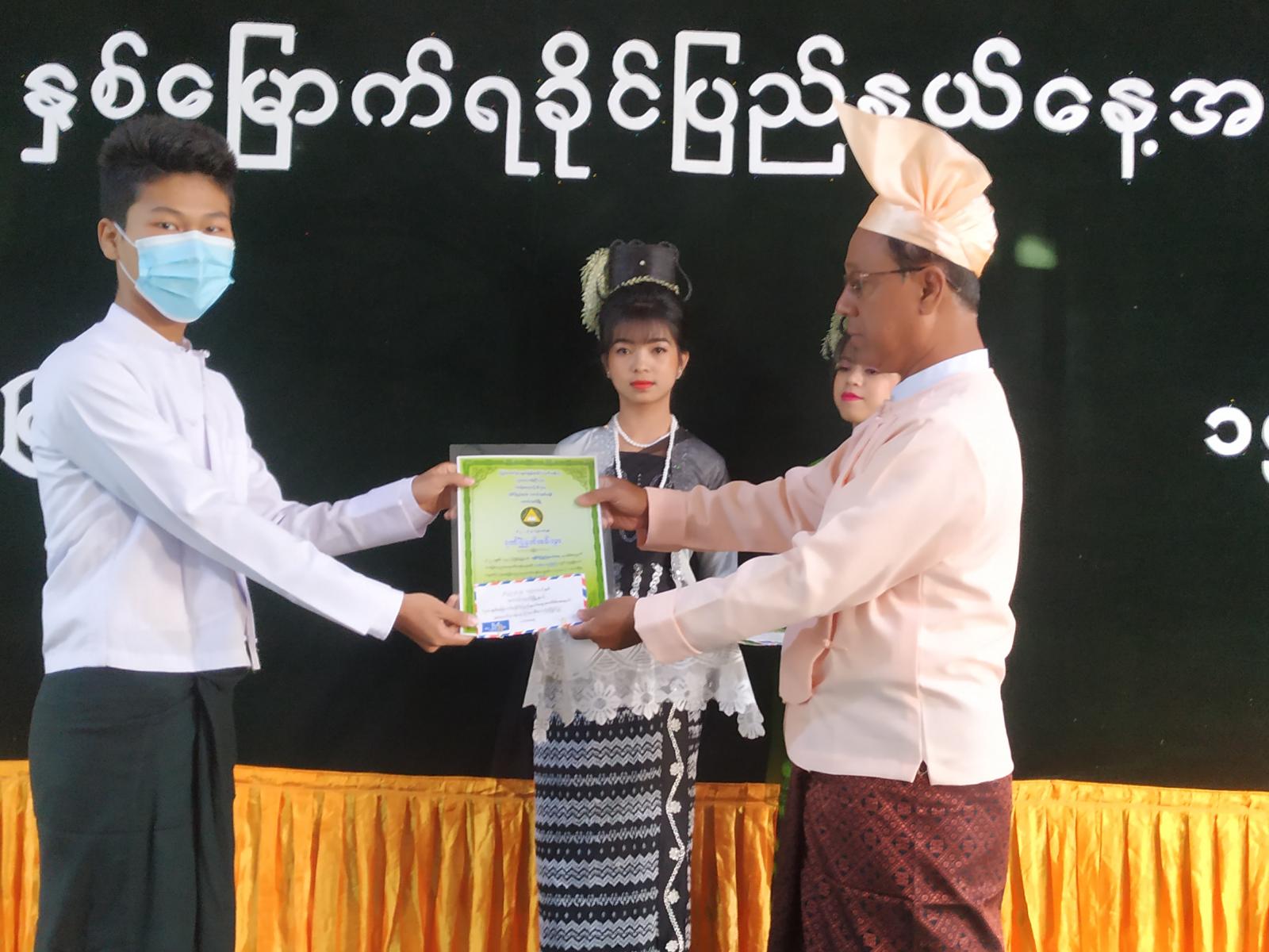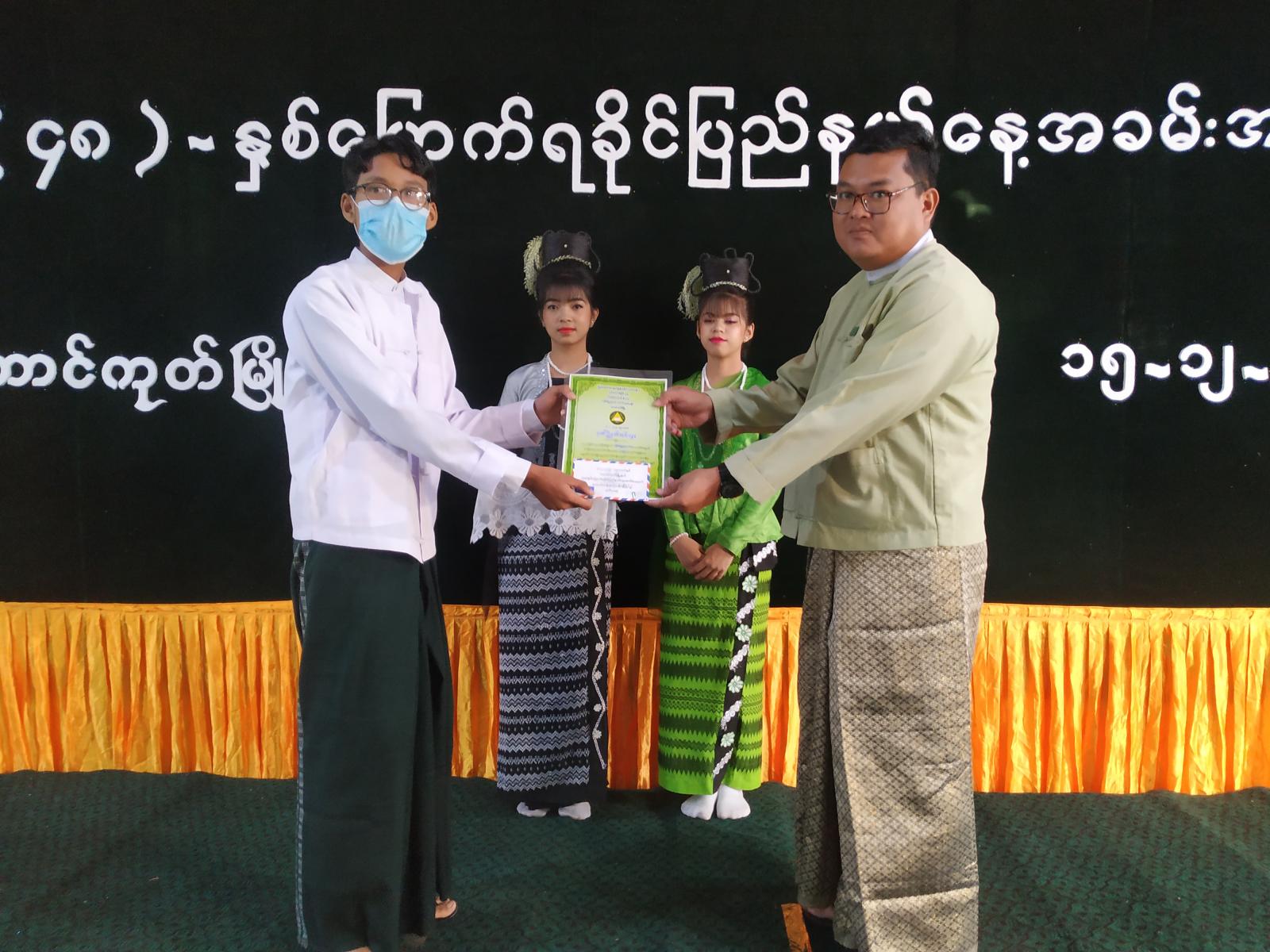 ထို့နောက် (၄၈)နှစ်မြောက် ရခိုင်ပြည်နယ်နေ့အထိမ်းအမှတ်အဖြစ် ကျင်းပပြုလုပ်သည့် အခြေခံပညာအထက်တန်း၊ အလယ်တန်းအဆင့် စာစီစာကုံးနှင့်ပန်းချီပြိုင်ပွဲများတွင် ဆုရရှိကြသည့် ကျောင်းသား၊ ကျောင်းသူများသို့ ခရိုင်စီမံအုပ်ချုပ်ရေးအဖွဲ့ ဥက္ကဋ္ဌ နှင့်တာဝန်ရှိသူများက ဆုချီးမြှင့်ပေးကြပြီးနောက် ဆုရကျောင်းသား၊ ကျောင်းသူများနှင့် စုပေါင်းမှတ်တမ်းတင်ဓာတ်ပုံရိုက်ကူးကာ ဆုရပန်းချီများနှင့် စာစီစာကုံးများကို ကြည့်ရှုကြသည်။