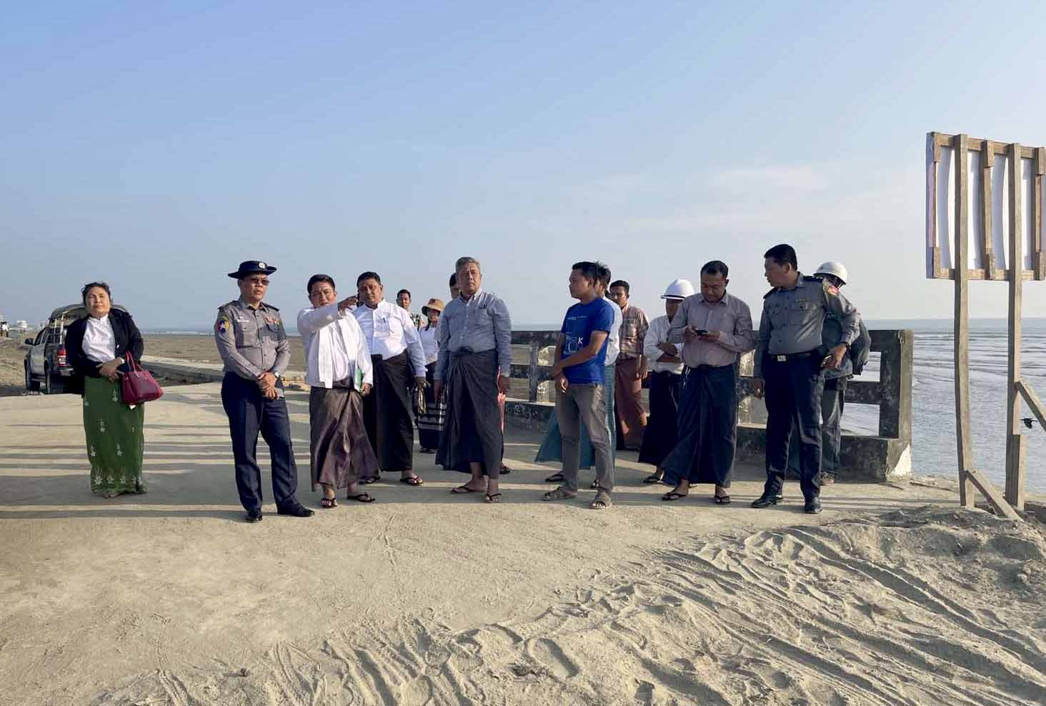 ရခိုင်ပြည်နယ်ကျေးလက်လမ်းဖွံ့ရေးဦးဌာနမှ စစ်တွေမြို့နယ်၌ ရခိုင်ပြည်နယ် အစိုးရအဖွဲ့ငွေလုံးငွေရင်း ရန်ပုံငွေဖြင့် ဆောင်ရွက်မည့် စစ်တွေကမ်းခြေပတ်လမ်း ကျောက်စီမြေထိန်းနံရံ တည်ဆောက်ခြင်းလုပ်ငန်းအား ပြည်နယ်လမ်းပန်းဆက်သွယ်ရေးဝန်ကြီး ရဲမှူးကြီး သက်လွင်၊ ကျေးလက်လမ်းဖွံ့ဖြိုးရေးဦးစီးဌာန ပြည်နယ် တာဝန်ခံဦးဝင်းမြင့်ဟန်၊ ခရိုင်၊ မြို့နယ်တာဝန်ခံနှင့် တာဝန်ရှိသူများက ယနေ့နံနက်ပိုင်းတွင် ကွင်းဆင်းစစ်ဆေးကြသည်။