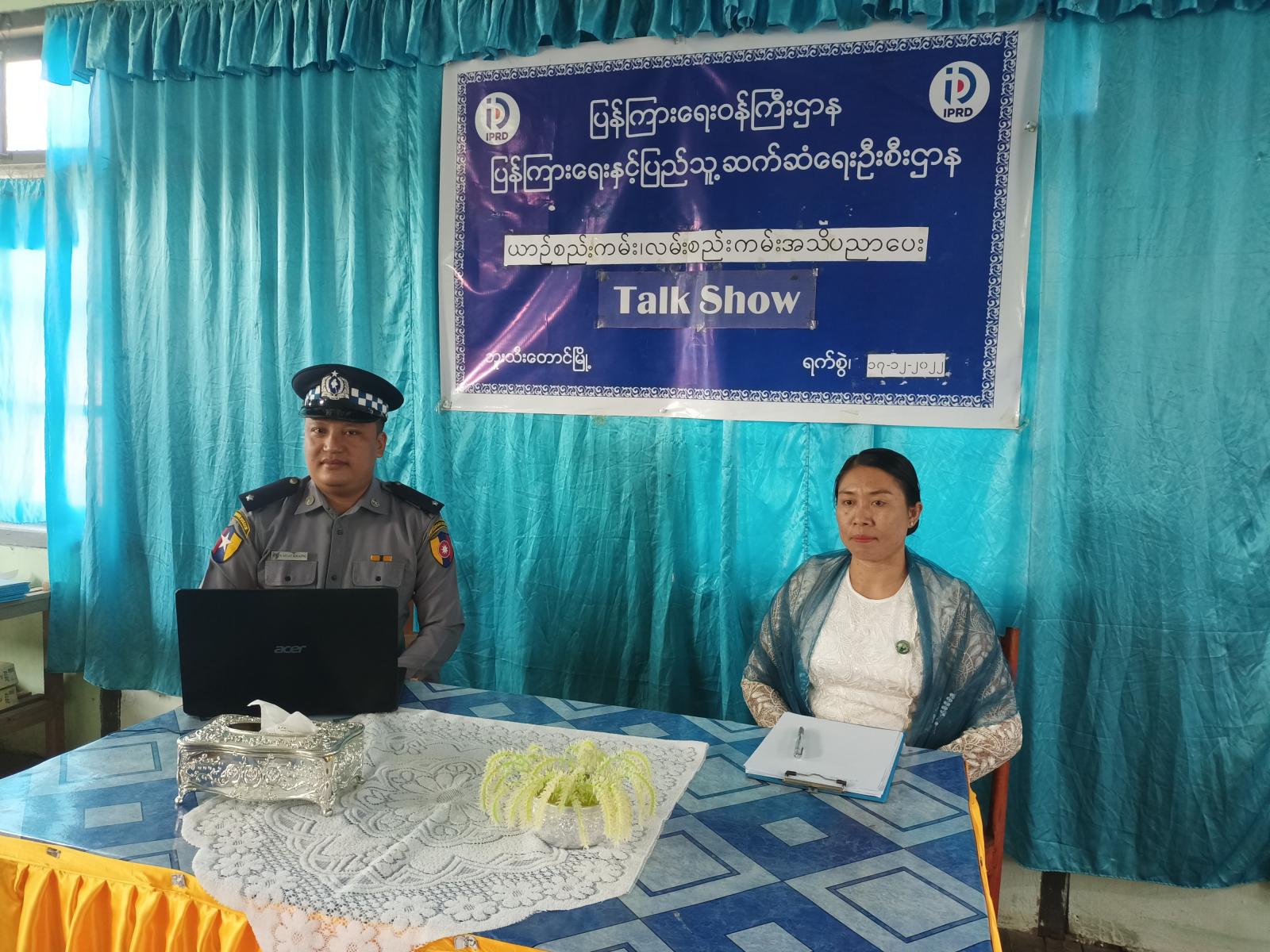 အဆိုပါ ဆွေးနွေးပွဲတွင် ဘူးသီးတောင်မြို့နယ် ပြန်ကြားရေးနှင့်ပြည်သူ့ဆက်ဆံရေးဦးစီးဌာနမှ ဦးစီးအရာရှိ ဒေါ်အေးအေးအောင်က Talk Show ကျင်းပပြုလုပ်ရသည့် ရည်ရွယ်ချက်ကို ရှင်းလင်းပြောကြားခဲ့ပြီး မြန်မာနိုင်ငံရဲတပ်ဖွဲ့၊ ဘူးသီးတောင်မြို့နယ် ရဲတပ်ဖွဲ့မှ ယာဥ်စည်းကမ်း၊ လမ်းစည်းကမ်း ထိန်းသိမ်းရေးတာဝန်ခံဒုရဲအုပ် ဦးထွန်းမြတ်ခိုင်က ယာဉ်အန္တရာယ်၊ လမ်းအန္တရာယ် ကင်းရှင်းစေရေးအတွက် ယာဉ်စည်းကမ်း၊ လမ်းစည်းကမ်းဆိုင်ရာများ၊ ယာဉ်တိုက်မှုကြောင်း ထိခိုက်၊ သေဆုံးမှုများ၊ မော်တော်ဆိုင်ကယ်မောင်းနှင်စီးနင်းရာတွင် လိုက်နာရမည့် စည်းကမ်းချက်များ၊ ယာဉ်စည်းကမ်း၊ လမ်းစည်းကမ်းဆိုင်ရာ ဆောင်ရန်/ရှောင်ရန်တို့ကို ပြည်သူများ သိရှိလိုက်နာဆောင်ရွက်ကြရန် ကျယ်ကျယ်ပြန့်ပြန့် ရှင်းလင်းဆွေးနွေးခဲ့ကြကြောင်း သိရသည်။
