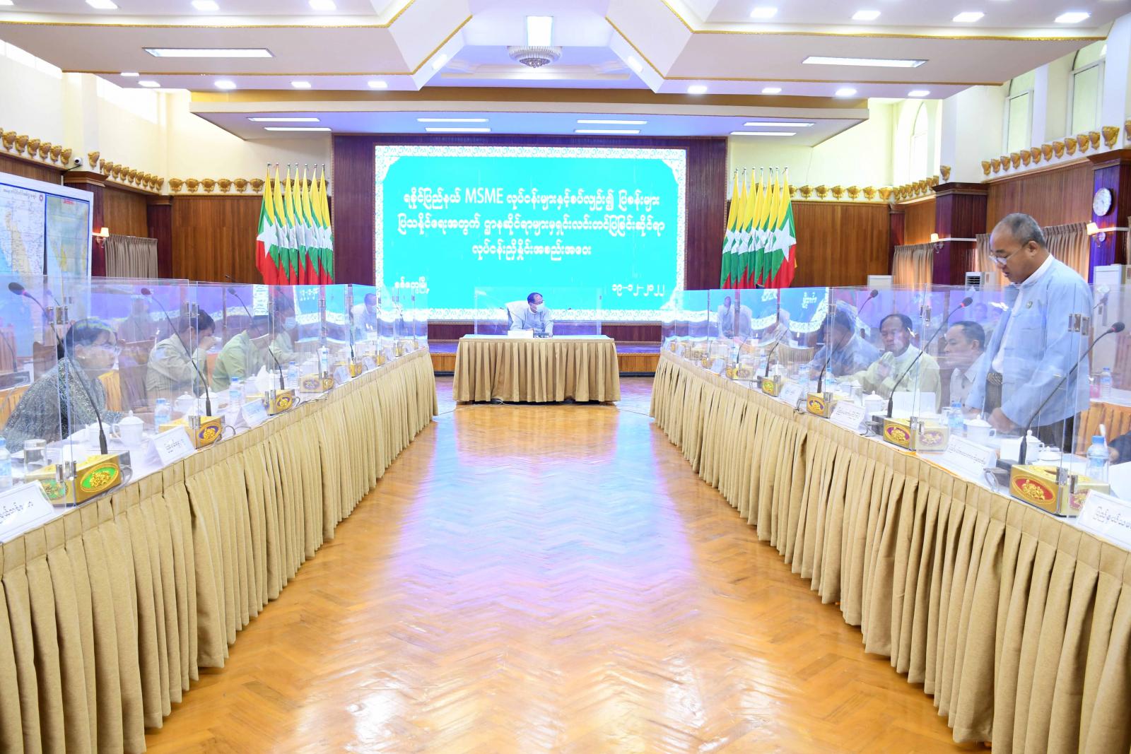 ရခိုင်ပြည်နယ် အသေးစား၊ အငယ်စားနှင့် အလတ်စားစီးပွားရေးလုပ်ငန်းများ (MSME) ဖွံ့ဖြိုး တိုးတက်ရေးနှင့်စပ်လျဉ်း၍ ပြခန်းများပြသနိုင်ရေးအတွက် ဌာနဆိုင်ရာများမှ ရှင်းလင်းတင်ပြခြင်းဆိုင်ရာ လုပ်ငန်းညှိနှိုင်းအစည်းအဝေးကို ယနေ့နံနက်ပိုင်းက ရခိုင်ပြည်နယ်အစိုးရအဖွဲ့ရုံး အစည်းအဝေးခန်းမ၌ ကျင်းပသည်။