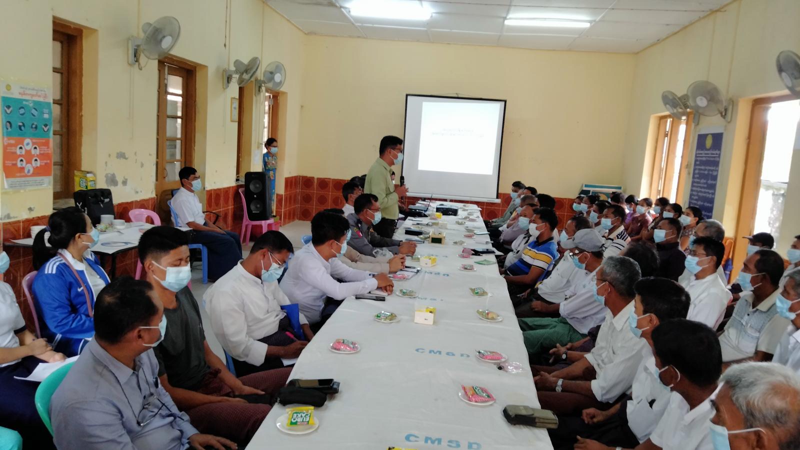 ထိုသို့ ဒေသဖွံ့ဖြိုးရေးလုပ်ငန်းများ ကွင်းဆင်းဆောင်ရွက်ရာတွင် မြို့နယ်စီမံအုပ်ရေးအဖွဲ့ဥက္ကဋ္ဌ မြို့နယ်အုပ်ချုပ်ရေးမှူး ဦးနိုင်လင်းထက်က မိမိတို့၏ရပ်ရွာဒေသ၊ နယ်မြေဒေသလုံခြုံရေး၊ အေးချမ်းသာယာရေး၊ တရားဥပဒေစိုးမိုးရေးနှင့် အထွေထွေအုပ်ချုပ်ရေးဦးစီးဌာနမှ ဆောင်ရွက် ပေးလျက်ရှိသော လုပ်ငန်းများနှင့်စပ်လျဉ်း၍လည်းကောင်း၊ မြို့နယ်ရဲမှူး ဦးသက်နိုင်ဦးက လူငယ်နှင့်မူးယစ်ဆေးဝါးအန္တရာယ်များအား ကျယ်ကျယ်ပြန့်ပြန့်သိရှိ ကာကွယ်နိုင်ရန်၊ ရပ်မိရပ်ဖများမှလည်း တာ၀န်သိပြည်သူများအနေနှင့် ဝိုင်း၀န်းပူးပေါင်းပါ၀င်ကြရန် အသိပေး နှိုးဆော်၍ ရှင်းလင်းပြောကြားခဲ့ပြီး၊ မြို့နယ်ကျန်းမာရေးဦးစီးဌာန၊ မြို့နယ်ဆရာဝန် ဒေါက်တာတင်မြင့်ဦးက မြို့နယ်ဆေးရုံ၏ ဝန်ဆောင်မှုများ၊ အားသာချက်အာနည်းချက်များနှင့် ကူးစပ်ရောဂါများ ဖြစ်ပွာလာပါက ပြည်သူလူထုများအနေဖြင့် ပူးပေါင်းပါဝင် ဆောင်ရွက်ကြရန်နှင့် ကျန်းမာရေးဆိုင်ရာ ဗဟုသုတများအား ဆွေးနွေးဟောပြောခဲ့သည်။