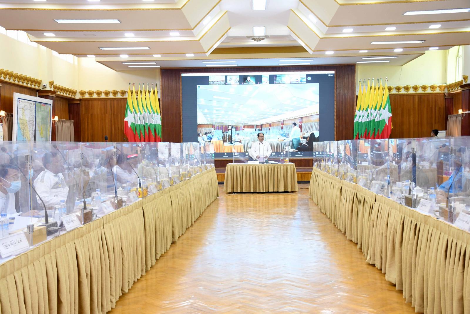 ယင်းနောက် ပြည်နယ်အဆင့် လုပ်ငန်းကော်မတီအတွင်းရေးမှူးများနှင့် Video Conferencing စနစ်ဖြင့် တက်ရောက်ကြသည့် ခရိုင်နှင့်မြို့နယ်စီမံအုပ်ချုပ်ရေးအဖွဲ့ဥက္ကဋ္ဌများက မိမိတို့ကော်မတီအလိုက် လုပ်ငန်းဆောင်ရွက်နေမှုနှင့် ဆက်လက်ဆောင်ရွက်မည့် အခြေအနေများကို ဆွေးနွေးတင်ပြကြရာ လုပ်ငန်းကော်မတီကော်မတီဥက္ကဋ္ဌ၊ ပြည်နယ်ဝန်ကြီးများက ဖြည့်စွက်ဆွေးနွေး တင်ပြကြသည်။