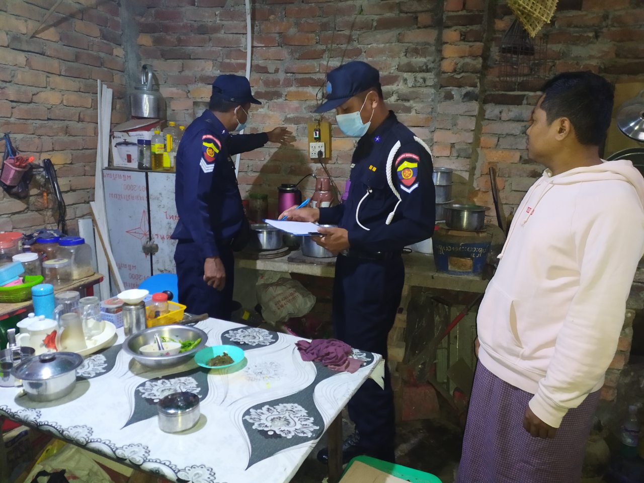 ထိုသို့စစ်ဆေးအကြံပေးရာတွင် မြို့နယ်မီးသတ်စခန်းမှတပ်ကြပ်ကြီး ကျော်ဆန်းဦးနှင့် တပ်ဖွဲ့ဝင်များက နေအိမ်များတွင် မီးချိတ်၊ မီးကပ်၊ သဲအိတ်နှင့်မီးသတ်ဆေးဘူး စသည့် မီးဘေးကာကွယ်ရေးပစ္စည်းများအား အသင့်ထားရှိရေး၊ နေအိမ်များတွင် လောင်စာဆီများ သိုလှောင်ခြင်းမပြုရန်၊ အိမ်တွင်တပ်ဆင်ထားသော ဟောင်းနွမ်း လျှပ်စစ်ဝါယာကြိုးများနှင့် ပျက်စီးနေသောလျှပ်စစ်ပစ္စည်းများအား အသုံးမပြုကြရန်၊ မီးသွေးမီးဖိုဖြင့် ထမင်း၊ ဟင်းချက်ပြုတ်ပြီးပါက မီးကြွင်းမီးကျန်များအား စနစ်တကျ မီးငြိမ်းသတ်ကြရန်၊ စသည့်တို့ကို စစ်ဆေးအကြံပေးကြသည်။