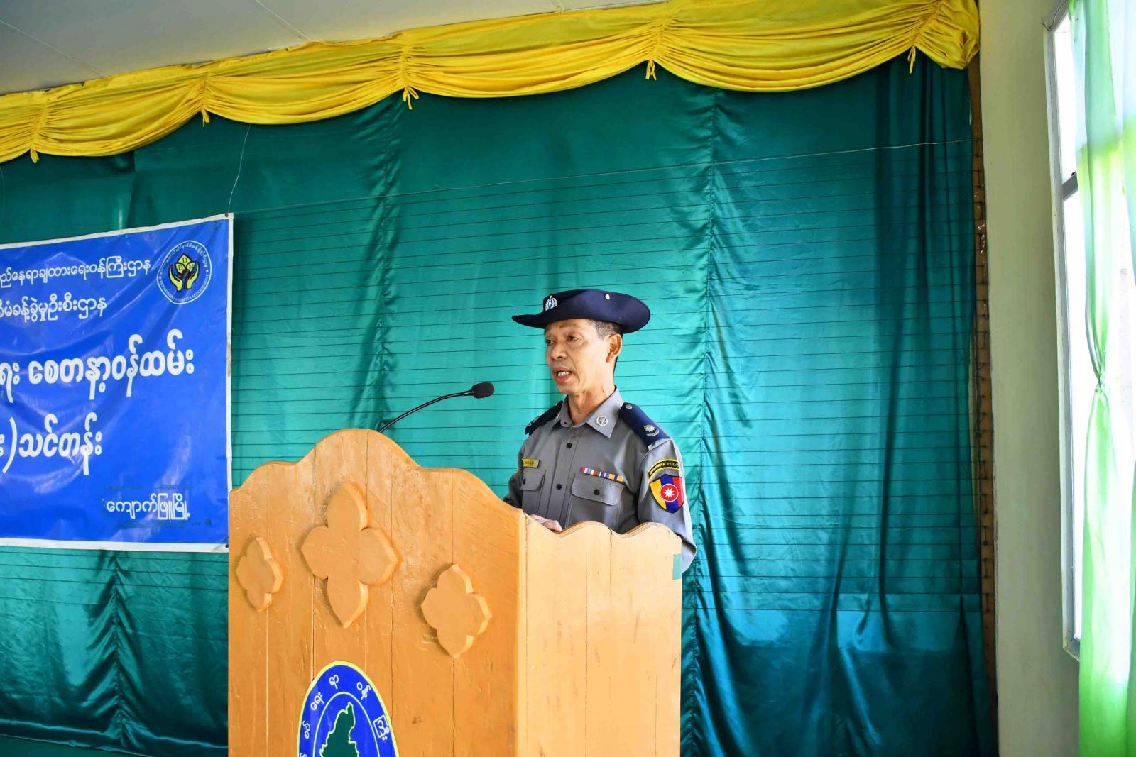 အခမ်းအနားတွင် ကျောက်ဖြူမြို့နယ် စီမံအုပ်ချုပ်ရေးအဖွဲ့ အတွင်းရေးမှူး ရဲမှူး သန့်ဇော်က ကျောက်ဖြူမြို့နယ်သည် ကမ်းရိုးတန်းဒေသဖြစ်သဖြင့် ပင်လယ်ကမ်းခြေနှင့်နီးခြင်း၊ ဘင်္ဂလားပင်လယ်အော်တွင် မုန်တိုင်းများ မကြာခဏ ဖြစ်ပေါ်နေခြင်းကြောင့် သဘာဝဘေးဒဏ်ကို မကြာခဏခံစားနေကြရပါကြောင်း၊ မီးဘေး၊ ရေဘေး၊ လေဘေး စသည့်ဘေးများဖြစ်ပွားနိုင်ပြီး နှစ်စဉ်ရေကြီးရေလျှံမှုများ၊ မိုးကြိုးပစ်ခြင်းများ၊ လေဆင်နှာမောင်းတိုက်ခတ်ခြင်းတို့ကြောင့် လူ့အသက်ဆုံးရှုံးမှုများ ဖြစ်ပေါ်နိုင်သဖြင့် ထိခိုက်ဆုံးရှုံးမှုများ လျော့နည်းစေရန်အတွက် လူတစ်ဦးချင်းစီ၏ သိရှိမှုမှတစ်ဆင့် ပြည်သူလူထုအားလုံး၏ စွမ်းဆောင်ရည် မြှင့်တင်ပေးခြင်းကို ပူးပေါင်းဆောင်ရွက်ရန်လိုအပ်ပါကြောင်း၊ တက်ရောက်လာကြသည့် သင်တန်းသား/ သင်တန်းသူများမှလည်း သဘာဝဘေးလျော့ပါးရေးလုပ်ငန်းများကို ပူးပေါင်းပါဝင်ဆောင်ရွက်ခြင်းဖြင့် သဘာဝဘေးဒဏ် ကြံ့ကြံ့ခံရင်ဆိုင်နိုင်သော ဒေသအဖြစ် တည်ဆောက်ကြစေလိုပါကြောင်း ပြောကြားသည်။ ထို့နောက် ဘေးအန္တရာယ်ဆိုင်ရာ စီမံခန့်ခွဲမှုဦးစီးဌာန၊ ကျောက်ဖြူခရိုင် ဦးစီးမှူးရုံးမှ တာဝန်ခံအရာရှိက သင်တန်းဖွင့်လှစ်ပို့ချရခြင်း၏ ရည်ရွယ်ချက်အား ရှင်းလင်းပြောကြားပြီး တာဝန်ရှိသူများက သင်တန်းသား/ သင်တန်းသူများကို အထောက်အကူပြု ပစ္စည်းများ ထောက်ပံ့ပေးအပ်ခဲ့သည်။