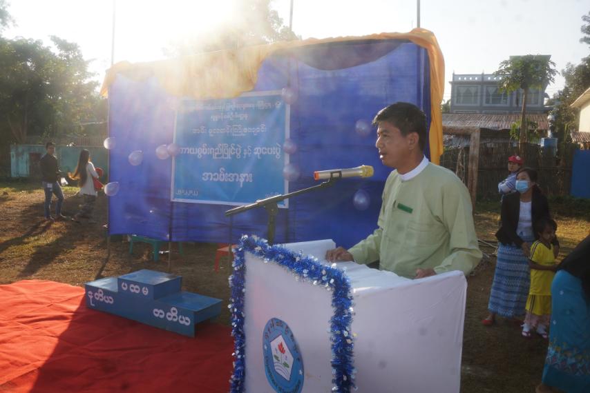 အခမ်းအနားအား အမ်းမူလတန်းကြိုကျောင်းမှ မူကြိုကလေးငယ်များက အာရှမြန်မာသီချင်းဖြင့် သီဆိုကပြ ဖွင့်လှစ်ပေးခဲ့ကြသည်။ ဆက်လက်၍ မြို့နယ်စီမံအုပ်ချုပ်ရေးအဖွဲ့ ဥက္ကဌ ဦးစိုးမင်းထက်က ကလေးသူငယ်များတွင် အသက်ရှင်သန်ခွင့်၊ ဖွံဖြိုးတိုးတက်ခွင့်၊ ကာကွယ်စောင့်ရှောက်ခွင့်၊ ပါဝင်ဆောင်ရွက်ခွင့် အခွင့်အရေး (၄) ရပ် ရှိပါကြောင်း၊ ကလေး သူငယ်များနှင့် ပတ်သက်၍ လူမှုဝန်ထမ်းဦးစီး ဌာနအပြင် အခြားဌာန အဖွဲ့အစည်းများ ကလည်း အလေးထား၍ အဓိကဆောင်ရွက်လာတာကိုတွေ့ရှိရပါကြောင်း၊ အနာဂတ်တွင် လင်းလတ်မည့် ကြယ်ပွင့်များဖြစ်သည့်အတွက် ယခုမှုကြိုအရွယ် ကလေးငယ်ကတည်းကပင် ဖွံဖြိုးမှု (၅) ရပ်နှင့် ပြည့်စုံပြီး ဘဝတစ်သက်တာ အလေ့အကျင့်ကောင်း များကိုရရှိစေရန် ပြုစုပျိုးထောင်ပေးသော မှုကြိုကျောင်းများ ပေါ်ပေါက်လာသည့်အတွက် များစွာ ဂုဏ်ယူပါကြောင်း၊ ကျန်းမာသန်စွမ်းပြီး ထူးချွန်ထက်မြတ်သော နိုင်ငံ့သား/သမီး ရတနာများ ဖြစ်ပေါ်လာစေရန် ယခုမှုကြိုကလေးငယ်အရွယ်မှစ၍ ဆရာ/ဆရာမများနှင့် မိဘများ၏ ပံပိုးကူညီမှု ပတ်ဝန်းကျင်များပါ ပူးပေါင်းဆောင်ရွက်ကြရန် အဖွင့်အမှာစကား ပြောကြားခဲ့သည်။