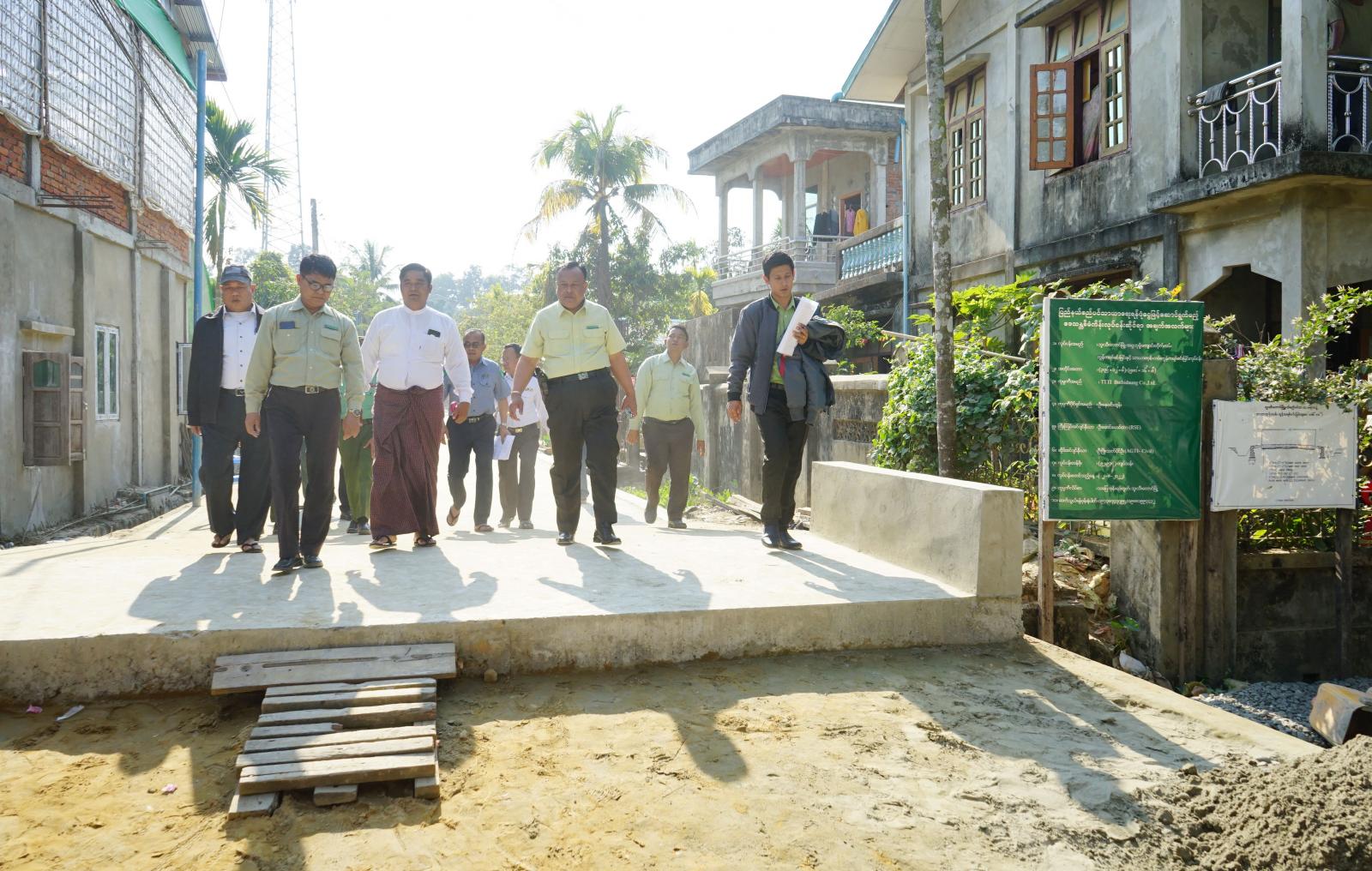 ထို့သို့ စစ်ဆေးဆောင်ရွက်ရာတွင် မောင်တောခရိုင်စီမံအုပ်ချုပ်ရေးအဖွဲ့ဥက္ကဋ္ဌ ဦးနေဦးနှင့် အဖွဲ့ဝင်များ၊ တာဝန်ရှိသူများသည် ဘူးသီးတောင်မြို့ တောင်ရပ်ကွက်တွင် TTTI ကုမ္ပဏီမှ တာဝန်ယူဆောင်ရွက် လျက်ရှိသည့် သာယာဝတီလမ်း အလျား ၅၈၀ ပေ၊ အနံ ၁၆ ပေ၊ အမြင့် ၈ လက်မရှိ ကွန်ကရစ်ခင်း ခြင်းလုပ်ငန်း၊ အဂ္ဂဘုမ္မိဘုန်းတော်ကြီးကျောင်း တိုက်လမ်အလျား ၃၇၅ ပေ၊ အနံ ၁၂ ပေ၊ အမြင့် ၈ လက်မရှိ ကွန်ကရစ်ခင်းခြင်းလုပ်ငန်း၊စိုင်းဒင်အားမာန် ကုမ္ပဏီမှ ဆောင်ရွက်လျက်ရှိသော မေဃဝတီ လမ်းအလျား ၁၁၂၀ ပေ ၊ အနံ ၁၂ ပေ ၊ အမြင့် ၈ လက်မကွန်ကရစ်ခင်းခြင်းလုပ်ငန်းနှင့် Boxculvart အလျား ၂၀ ပေ ၊ အနံ ၁၂ ပေ ၊ အမြင့် ၈ လက်မတည်ဆောက်ခြင်းအား လည်းကောင်း၊ ဘူးသီးတောင်-အငူမော်ကားလမ်းမပေါ်၌ မြို့နယ်လမ်းဦးစီးဌာနမှ တာဝန်ယူဆောင်ရွက်လျက်ရှိသည့် Boxculvart အလျား ၃၄၄၅ ပေ၊ အနံ ၁၈ ပေ၊ အမြင့် ၉ လက်မတည်ဆောက်ခြင်းလုပ်ငန်းများအား သတ်မှတ်ကာလအတွင်း စံချိန်၊စံညွန်း အရည် အသွေး ပြည့်မှီစွာဖြင့် ဆောင်ရွက်ကြရန် တာဝန်ရှိသူများအား မှာကြားခဲ့ကြောင်းသိရသည်။