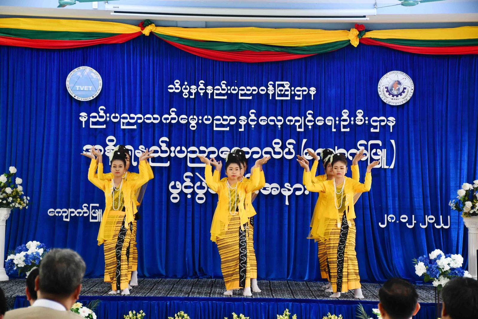 ထို့နောက် ခရိုင်စီမံအုပ်ချုပ်ရေးအဖွဲ့ဥက္ကဋ္ဌမှ နိုင်ငံတော်အဆင့် ဆို၊ က၊ ရေး၊ တီး ပြိုင်ပွဲ (မဟာဂီတ) အဆိုပြိုင်ပွဲတွင် ဒုတိယဆု၊ ပြည်နယ်အဆင့် ဆို၊ က၊ ရေး၊ တီး ပြိုင်ပွဲတွင် အဆိုပြိုင်ပွဲ (မဟာဂီတ)၊ အဆင့်မြင့်(အမျိုးသမီး)တွင် ပထမဆုနှင့် အဆိုပြိုင်ပွဲ (အမျိုးဂုဏ်/ဇာတိဂုဏ်)၊ အဆင့်မြင့်(အမျိုးသမီး)ဒုတိယဆုရရှိခဲ့သော A.G.T.I (ပထမနှစ်) ကျောင်းသူ မတင်ညိုပြာအေးအား ဆုများပေးအပ်ချီးမြှင့်သည်။ ယင်းနောက် EP, Civil, IT ကျောင်းသား၊ ကျောင်းသူများမှ ရခိုင်ရိုးရာအကများဖြင့်လည်းကောင်း၊ စာပေနှင့် အနုပညာအသင်းမှ ကျောင်းသား၊ ကျောင်းသူများမှ တေးသီချင်းများဖြင့်လည်းကောင်း ကပြသီဆိုဖျော်ဖြေပေးခဲ့ကြသည်။