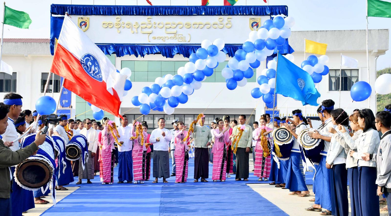 ရခိုင်ပြည်နယ်၊ ကျောက်ဖြူမြို့၊ စေတီယျရပ်ကွက်၌ တည်ဆောက်ထားသည့် သိပ္ပံနှင့် နည်းပညာဝန်ကြီးဌာန၊ အစိုးရနည်းပညာကောလိပ် (ကျောက်ဖြူ) ဖွင့်ပွဲအခမ်းအနားကို ယနေ့ နံနက် ၉ နာရီက ကျင်းပရာ သိပ္ပံနှင့်နည်းပညာဝန်ကြီးဌာန အမြဲတမ်းအတွင်းဝန် ဒေါက်တာ စိုင်းကျော်နိုင်ဦး၊ ခရိုင်စီမံအုပ်ချုပ်ရေးအဖွဲ့ဥက္ကဋ္ဌ ဦးရဲလင်းမောင်၊ အစိုးရ နည်းပညာကောလိပ် (ကျောက်ဖြူ) ကျောင်းအုပ်ကြီး ဒေါက်တာအောင်မွန်နှင့် ခရိုင်စီမံ အုပ်ချုပ်ရေးအဖွဲ့ဝင် ဦးတင်ရွှေတို့က အစိုးရနည်းပညာကောလိပ် (ကျောက်ဖြူ) အား ဖဲကြိုးဖြတ် ဖွင့်လှစ်ပေးခဲ့သည်။
