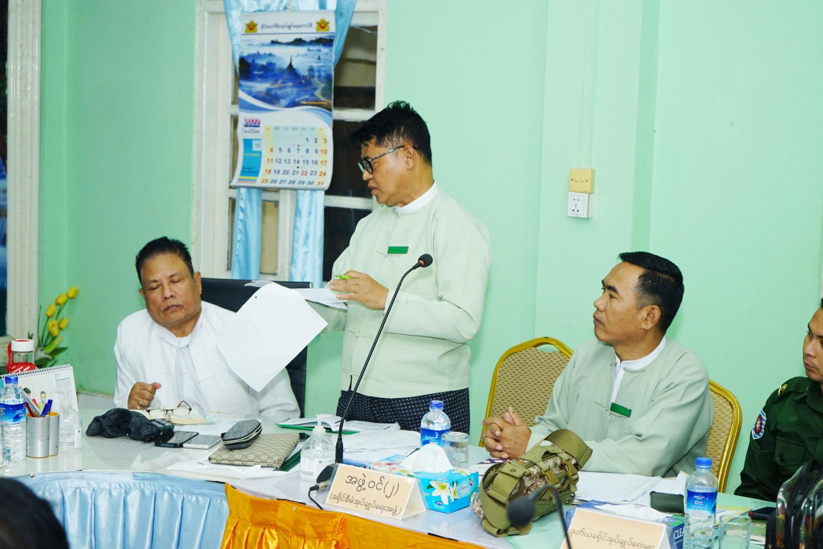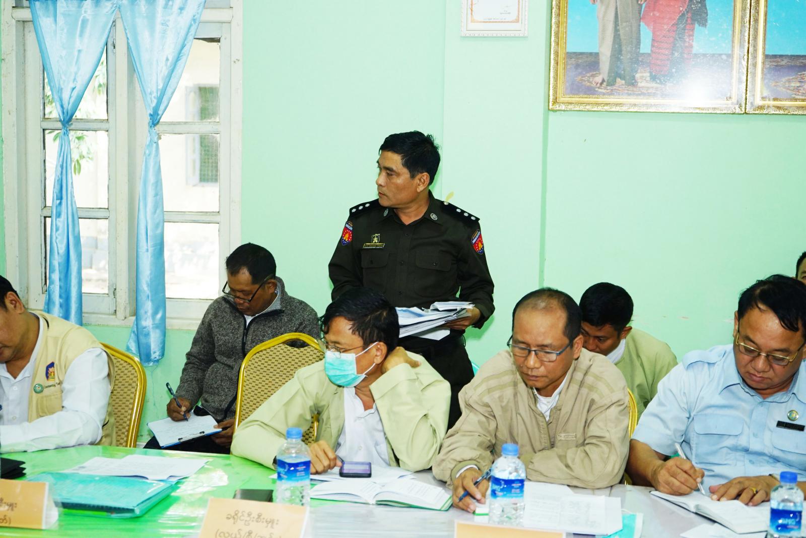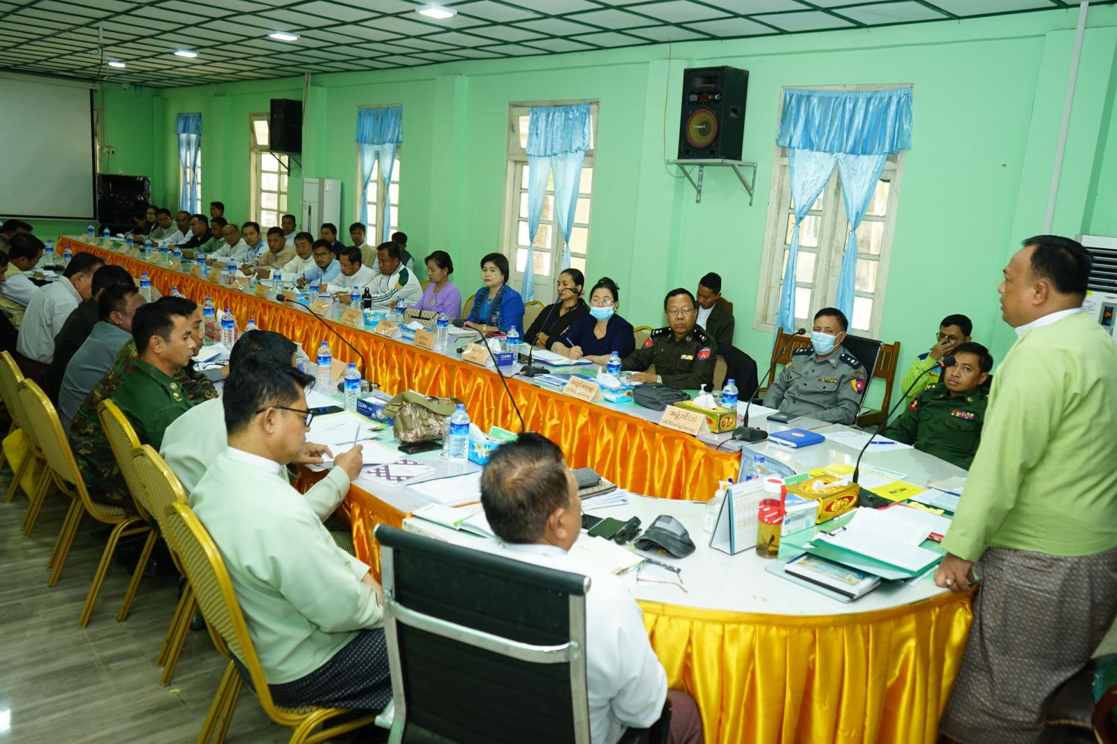 ရှေးဦးစွာ ခရိုင်စီမံအုပ်ချုပ်ရေးအဖွဲ့ဉက္ကဋ္ဌ ဦးနေဦးက ခရိုင်(Working Group) မြေပြင် ကွင်းဆင်းစာရင်းကောက်ယူရေးအဖွဲ့၏ လုပ်ငန်းတာဝန်များ၊ စာရင်းကောက်ယူခြင်း၊ စာရင်းထုတ်ပြန်ခြင်းများ၊ မြေပြင်ရှိ နှင့် အိမ်ထောင်စု လူဦးရေစာရင်း တိုက်ဆိုင်စစ်ဆေးခြင်းလုပ်ငန်း အကောင်အထည်ဖော်ဆောင်ရွက်ရာတွင်သက်ဆိုင်ရာ ရပ်ကွက်/ကျေးရွာအတွင်းရှိ အိမ်ထောင်စုလူဦးရေတစ်ခုချင်းစီအား မှန်ကန်သော စာရင်းရရှိရေး မြေပြင်ကွင်းဆင်းကောက်ယူရေး လုပ်ငန်းလမ်းညွှန်ချက်များနှင့် လူဦးရေစာရင်း မြေပြင်ကွင်းဆင်းကောက်ယူရေးလုပ်ငန်းများအား ဌာနဆိုင်ရာများက အတူတကွ ပူးပေါင်းဆောင်ရွက်ပေးရန် လိုအပ်ကြောင်းပြောကြားပြီး ၂၀၂၃ ခုနှစ်၊ ဇန်နဝါရီလ ၄ ရက်နေ့တွင် ကျရောက်မည့် (၇၅) နှစ်မြောက် စိန်ရတုလွတ်လပ်ရေးအထိမ်းအမှတ် စည်းကားသိုက်မြိုက်စွာကျင်းပနိုင်ရေးအတွက် ဆောင် ရွက်မည့်အစီအစဉ်များ၊ အားကစားပြိုင်ပွဲများနှင့် စတုဒီသာကျွေးမွေးနိုင်ရေး ဆောင်ရွက်ထားသည့် အခြေအနေများအား သိရှိလိုကြောင်း စသည့်တို့ကို ပြောကြားခဲ့သည်။
