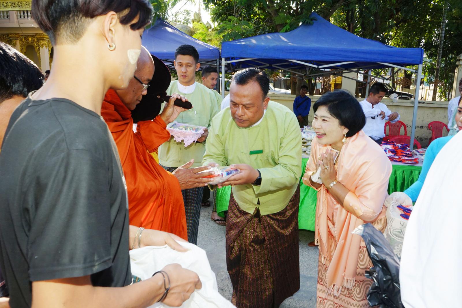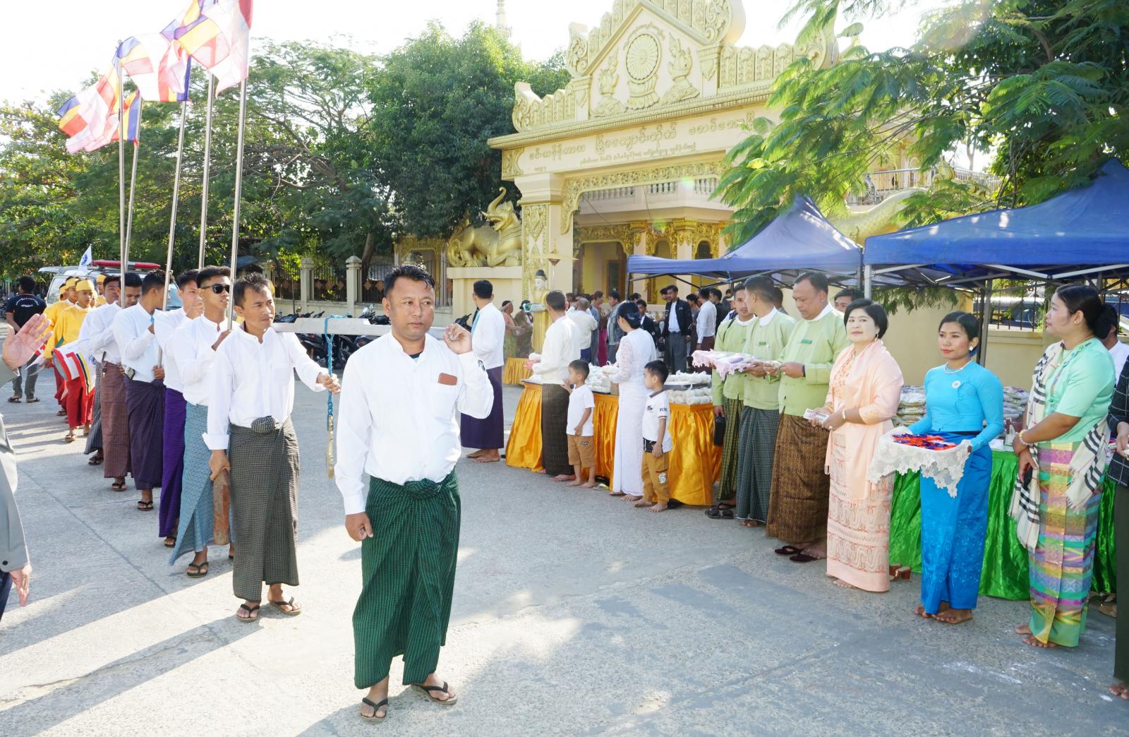 အဆိုပါ (၇၅)နှစ်မြောက်စိန်ရတုလွတ်လပ်ရေးနေ့ကို ကြိုဆိုဂုဏ်ပြုသောအားဖြင့် နှစ်ဦး ဆွမ်းဆန်တော်လောင်းလှူပွဲကို မြို့မဘုန်းတော်ကြီးကျောင်းမှ စတင်ထွက်ခွာကာ ဈေးကြီးတစ်ပတ်လမ်းမကြီးအတိုင်း စီတန်းလည့်လည်ပြီး မြို့နယ်အတွင်းရှိ ရဟန်း၊ သံဃာတော်၊ သာမဏေ (၁၃၀)ပါးခန့်အား နယ်မြေခံဒုတိယစစ်ဆင်ရေးကွပ်ကဲရေးမှူး၊ ခရိုင်စီမံအုပ်ချုပ်ရေးအဖွဲ့ဉက္ကဋ္ဌ ဦးနေဦးနှင့် အဖွဲ့ဝင်များ၊မြို့နယ်စီမံအုပ်ချုပ်ရေးအဖွဲ့ဉက္ကဋ္ဌ ဦးကံထွန်းအောင်နှင့် အဖွဲ့ဝင်များ၊ ခရိုင်/မြို့နယ်အဆင့် ဌာနဆိုင်ရာများနှင့် စေတနာရှင်၊ အလှူရှင်များက ဆွမ်းဆန်စိမ်းနှင့် လှူဖွယ်ဝတ္တူများ စည်းကားသိုက်မြိုက်စွာ လောင်းလှူခဲ့ကြရာ မြန်မာနိုင်ငံကြက်ခြေနီအသင်းနှင့် ကရုဏာကွန်ရက် လူမှုကူညီရေးအသင်းများက ကူညီဆောင်ရွက်ပေးခဲ့ကြကြောင်းသိရသည်။