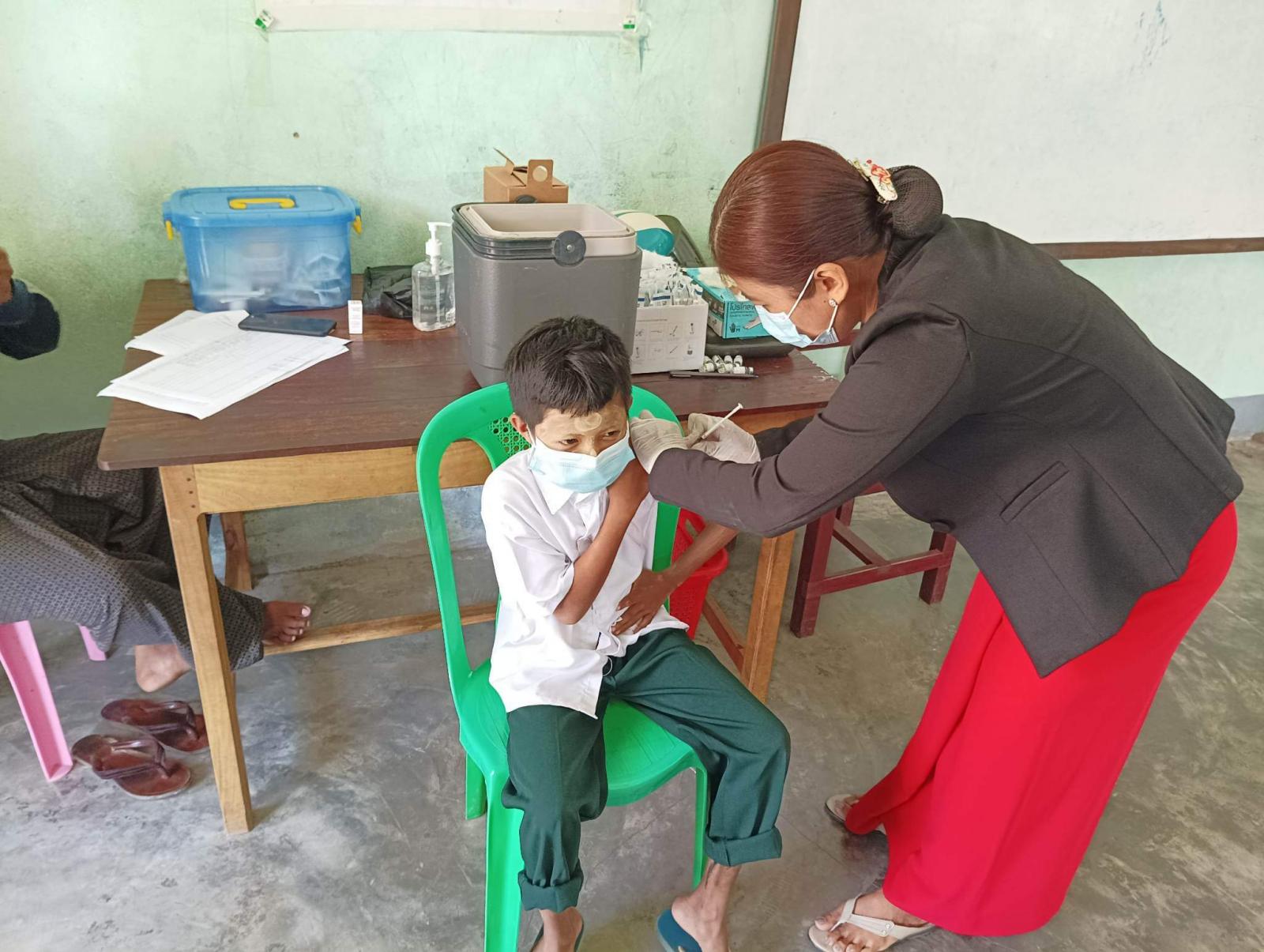 ထိုသို့ ကိုဗစ်-၁၉ရောဂါထပ်ဆောင်းကာကွယ်ဆေးထိုးနှံရာတွင် အမက(မူလွန်)ဇီးဖြူကုန်းနှင့် ငပလီ၊ မဇင်၊ မှိုဟင်းပြင်၊ စပါးကြီး၊ ဂေါ့ စသည့် ရပ်ကွက်များရှိ အခြေခံပညာကျောင်းများမှ Grade - 5 ကျောင်းသား ၊ ကျောင်းသူ(၅၂) ဦးသို့ ထိုးနှံပေးနိုင်ခဲ့ကြောင်း သိရသည်။