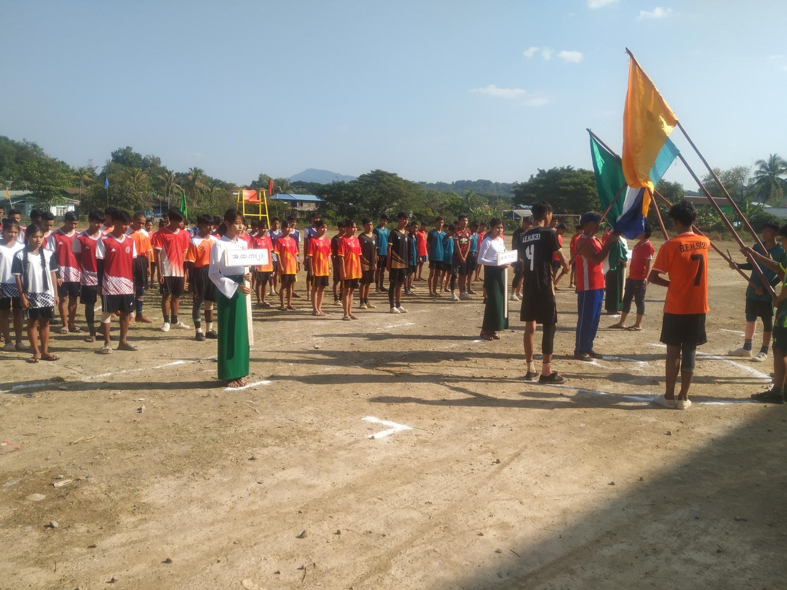 အခမ်းအနားတွင် ပြိုင်ပွဲဝင်အားကစားသမားများနေရာယူပြီးနောက် (၇၅)နှစ်မြောက်စိန်ရတု လွတ်လပ်ရေးနေ့အခမ်းအနားကျင်းပရေးဦးစီးကော်မတီဥက္ကဋ္ဌ၊ မြို့နယ်စီမံအုပ်ချုပ်ရေးအဖွဲ့၊ ဥက္ကဋ္ဌဦးဇာနည်တိုးက အမှာစကားပြောကြားပြီးနောက် ပြိုင်ပွဲဝင်အားကစားသမားများက အားကစားသစ္စာအဓိဌာန်များရွတ်ဆိုကြပြီးနောက် ပြိုင်ပွဲများအဖြစ် ကျောင်းပေါင်းစုံ ထုပ်ဆီးတိုးပြိုင်ပွဲ၊ ပိုက်ကျော်ခြင်းပြိုင်ပွဲနှင့် ဂျပန်ဂိုးကျဉ်းပြိုင်ပွဲများ ကျင်းပသည်။