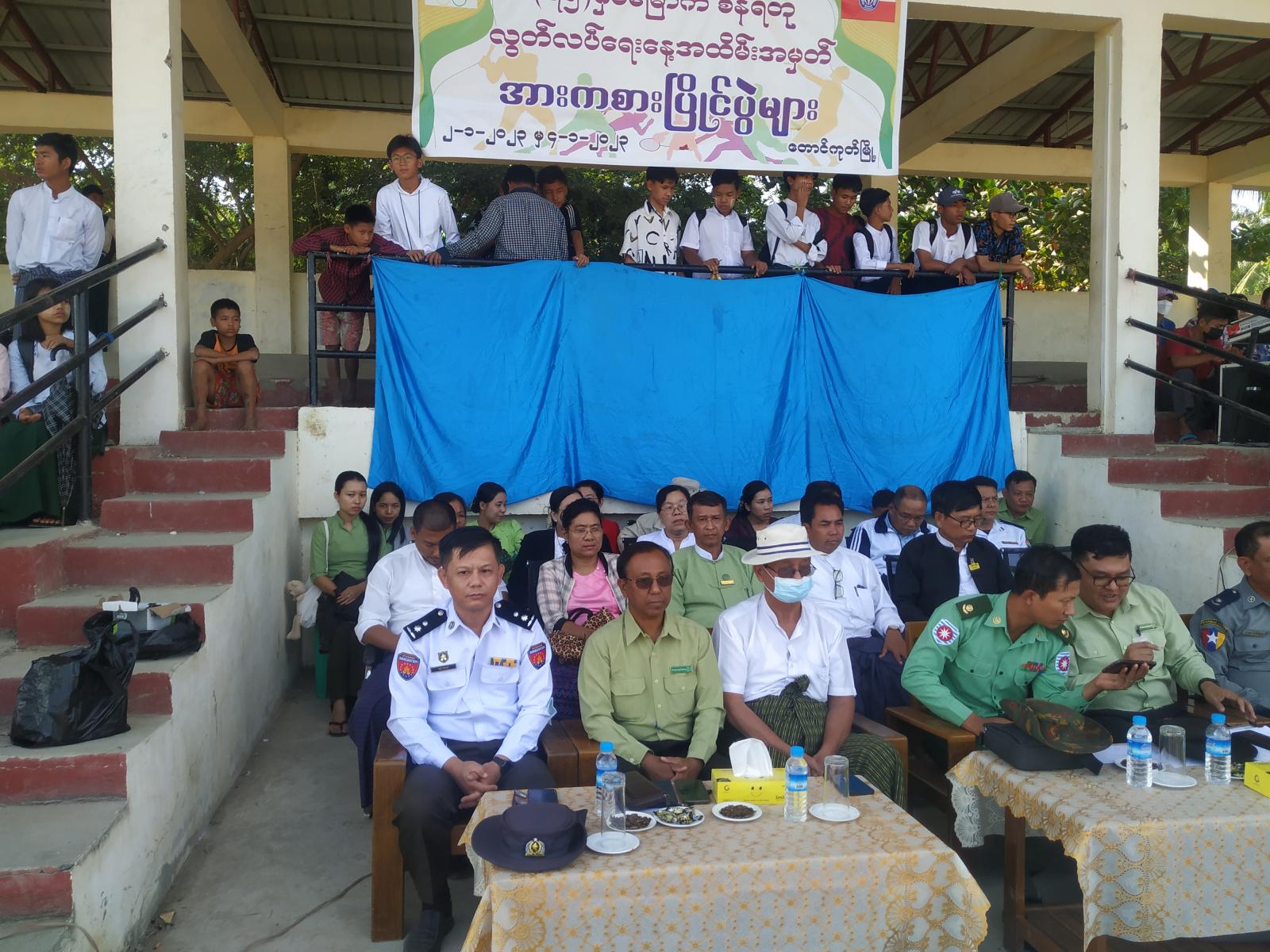 အဆိုပါအခမ်းအနားသို့ ခရိုင်စီမံအုပ်ချုပ်ရေးအဖွဲ့ဥက္ကဋ္ဌ ဦးကျော်မြင့်လှိုင်နှင့်အဖွဲ့ဝင်များ၊ မြို့နယ်စီမံအုပ်ချုပ်ရေးအဖွဲ့ဥက္ကဋ္ဌ ဦးဇာနည်တိုးနှင့်အဖွဲ့ဝင်များ၊ ခရိုင်၊ မြို့နယ်အဆင့်ဌာနဆိုင်ရာများ၊ တက်ရောက်ခဲ့ကြပြီး ပြိုင်ပွဲများအဖြစ် အလွတ်တန်းမီနီမာရသွန်ပြိုင်ပွဲ၊ အခြေခံပညာကျောင်းပေါင်းစုံပိုက်ကျော်ခြင်းပြိုင်ပွဲ၊ အမျိုးသမီးထုပ်ဆီးတိုးပြိုင်ပွဲ၊ ဂျပန်ဂိုးကျဉ်းပြိုင်ပွဲများနှင့် အခြားပျော်ပွဲရွှင်ပွဲများကို ဆက်လက်ကျင်းပသွားမည်ဖြစ်ကြောင်း သိရသည်။