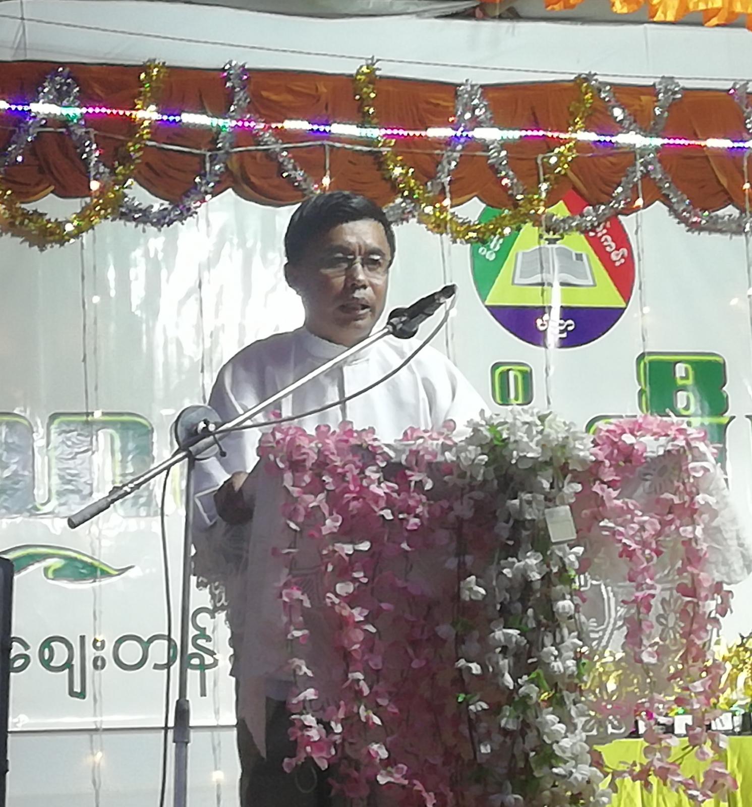 ရှေ့ဦးစွာအ-ထ-က(ခွဲ)စျေးတန်းကျောင်းအုပ် ဆရာကြီးဦးမြင့်လွင်မှ ၂၀၂၂-၂၀၂၃ ခုနှစ်ပညာသင်နှစ်တွင် ပညာရေးဆောင်ရွက်ချက်များအား ရှင်းလင်းပြောကြားသည်။