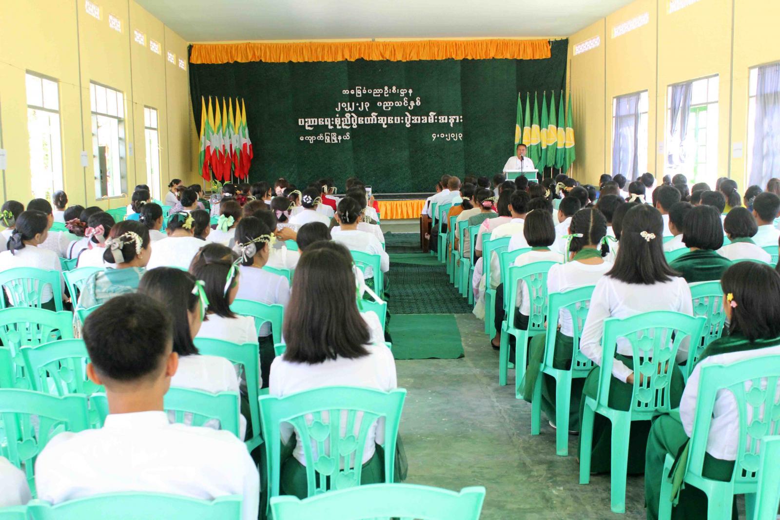 ရခိုင်ပြည်နယ်၊ ကျောက်ဖြူမြို့၊ မြို့နယ်ပညာရေးမှူးရုံးရှိ ကုမုဒြာခန်းမ၌ ၂၀၂၂-၂၀၂၃ ပညာသင်နှစ်၊ မြို့နယ်အဆင့် ပညာရေးစုံညီပွဲတော် ဆုပေးပွဲအခမ်းနားကို ယနေ့မွန်းတည့် ၁၂ နာရီအချိန်တွင် အဆိုပါခန်းမ၌ ကျင်းပခဲ့သည်။