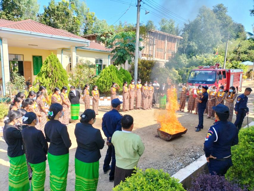 ဆက်လက်၍ မြို့နယ်မီးသတ်ဦးစီးဌာနမှ ဟောပြောပွဲသို့ တက်ရောက်သည့် မြို့နယ်အဆင့် ဌာနဆိုင်ရာတာဝန်ရှိသူများနှင့် သင်တန်သူများအား မီးဘေးအန္တရာယ် ကြိုတင်ကာကွယ်ရေး လက်တွေ့သရုပ်ပြသခြင်း ဆောင်ရွက်ခဲ့ကြောင်း သိရသည်။