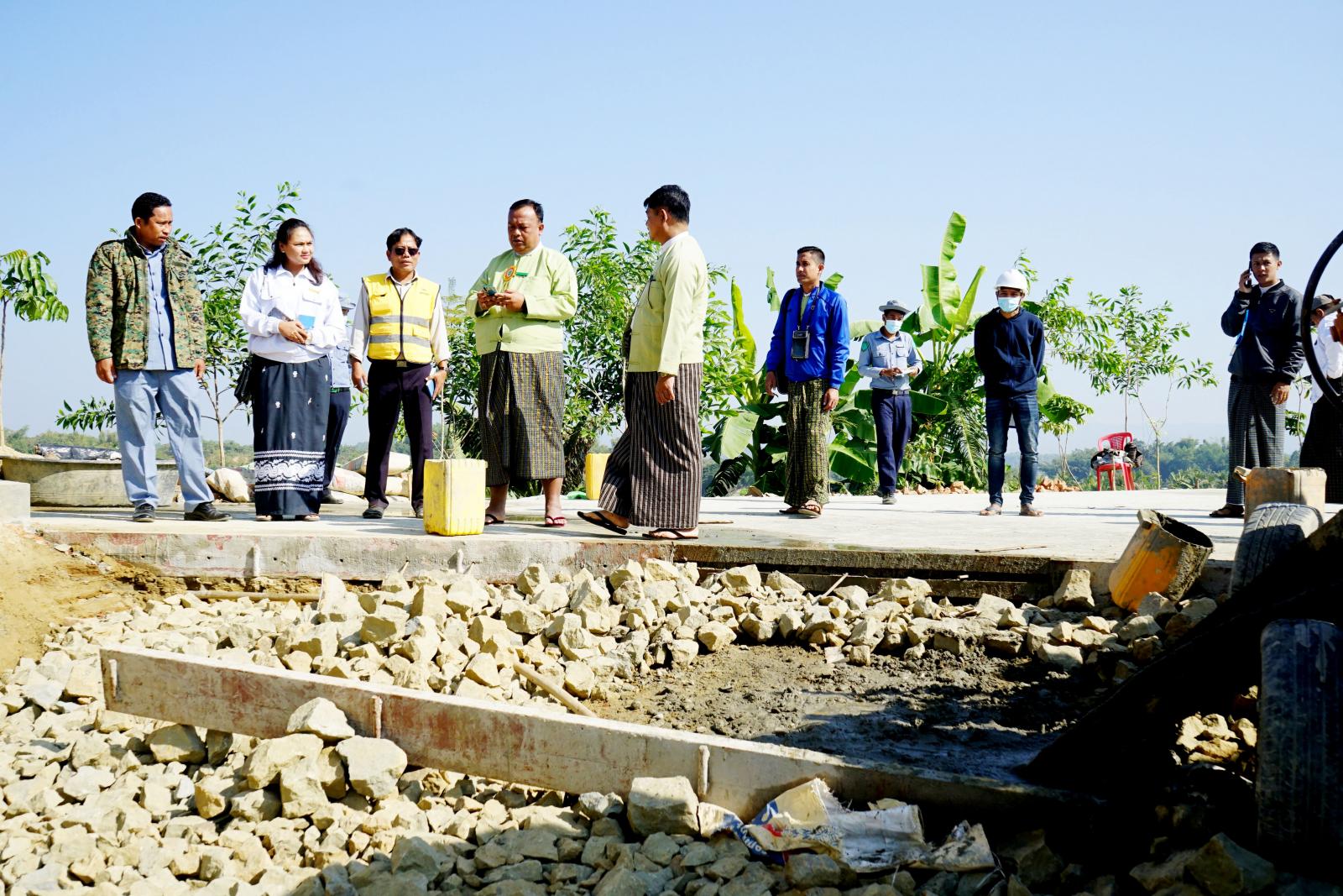 ထို့သို့ စစ်ဆေးဆောင်ရွက်ရာတွင် မောင်တောခရိုင်စီမံအုပ်ချုပ်ရေးအဖွဲ့ဥက္ကဋ္ဌ ဦးနေဦးနှင့် အဖွဲ့ဝင်များ ၊ တာဝန်ရှိသူများသည် ဘူးသီးတောင်မြို့နယ်အတွင်းရှိ ၂၀၂၂-၂၀၂၃ ဘဏ္ဍာရေးနှစ် ခွင့်ပြုရန်ပုံငွေဖြင့် ဆောင်ရွက်လျက်ရှိသော တည်ဆောက်ရေးလုပ်ငန်းများ ဖြစ်သည့် Silver Flower House ကုမ္ပဏီမှ ခွင့်ပြုရန်ပုံငွေ ၂၅၅.၄၃၅ သန်းဖြင့် ဆောင်ရွက်လျက်ရှိသည့် ၄ ခန်းတွဲ ၂ ထပ် မီးသတ်ဝန်ထမ်းအိမ်ရာ တည်ဆောက်ခြင်းနှင့် လုပ်ငန်းလက်ကျန် ခြံစည်းရိုးကာရံခြင်းလုပ်ငန်း၊ သိန်းရွှေဇင် ကုမ္ပဏီမှ ခွင့်ပြုရန်ပုံငွေ ၈၁.၀၀ သန်းဖြင့် ဆောင်ရွက်သည့် ရွှေဗိမာန်ဘုန်းတော်ကြီးကျောင်း အဝင်လမ်း ကွန်ကရစ်ခင်းခြင်းလုပ်ငန်း၊ မေယုအားမန် ကုမ္ပဏီမှ ခွင့်ပြုရန်ပုံငွေ ၃၆.၃၁၅ သန်းဖြင့် ဆောင်ရွက်သည့် မျိုးစေ့ဂိုဒေါင်ဆောက်လုပ်ခြင်းလုပ်ငန်း ၊ စိုင်းဒင်အားမန် ကုမ္ပဏီမှ ခွင့်ပြုရန်ပုံငွေ ၁၂၆.၀၀ သန်းဖြင့် ဆောင်ရွက်သည့် ပြည်သူ့ဆေးရုံ သိုလှောင်ရုံ ၊ ရင်ခွဲရုံ နှင့် ဆက်စပ်လုပ်ငန်းများ ၊ ထူးအေးရိပ် ကုမ္ပဏီမှ ခွင့်ပြုရန်ပုံငွေ ၇၅.၆၀ သန်းဖြင့် ဆောင်ရွက်သည့် ဇီဝကလမ်း ကွန်ကရစ်ခင်းခြင်းလုပ်ငန်း ၊ စိန်စီသောလမ်း ကုမ္ပဏီမှ ခွင့်ပြုရန်ပုံငွေ ၁၅.၀၀ သန်းဖြင့် ဆောင်ရွက်သည့် အားကစားခန်းမအနီး ရေစင်တည်ဆောက်ခြင်းလုပ်ငန်း ၊ လမင်းဟိန်း ကုမ္ပဏီမှ ခွင့်ပြုရန်ပုံငွေ ၁၃၅.၀၀ သန်းဖြင့် ဆောင်ရွက်သည့် စိုက်/ဘဏ်အဆောက်အဦ တည်ဆောက်ခြင်းလုပ်ငန်း ၊ စိုင်းဒင်အားမန် ကုမ္ပဏီမှ ခွင့်ပြုရန်ပုံငွေ ၁၆၃.၂၀၀ သန်းဖြင့် ဆောင်ရွက်သည့် မေဃဝတီလမ်းကွန်ကရစ်ခင်းခြင်းနှင့် Box Culvart ၁ စင်း တည်ဆောက်ခြင်းလုပ်ငန်းများအား ကြည့်ရှုစစ်ဆေးပြီး သတ်မှတ်ကာလ ဘဏ္ဍာရေးနှစ်အတွင်း စံချိန်၊ စံညွန်း အရည်အသွေး ပြည့်မှီစွာ ဖြင့် ဆောင်ရွက်ကြရန် ကုမ္ပဏီမှ တာဝန်ရှိသူများအား မှာကြားခဲ့ကြောင်း သိရသည်။