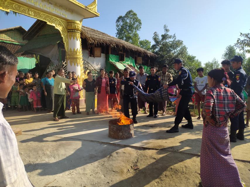 ရခိုင်ပြည်နယ် ရသေ့တောင်မြို့၌ မီးဘေးအန္တရာယ် ကြိုတင်ကာကွယ်နိုင်ရေးအတွက် ရသေ့တောင်မြို့၊ အရှေ့မြောက်ရပ်ကွက်၊ ပညာပရမီဘုန်းတော်ကြီးကျောင်းရှိ ပြည်သူများအား မီးဘေးလုံခြုံရေး အသိပညာပေးဟောပြောခြင်း၊ ဆီမီးလောင်မှုကို မီးသတ်ဆေးဗူးဖြင့် လက်တွေ့မီးငြိမ်းသတ်ခြင်းနှင့် ပိုက်လိပ်ပိုက်ခေါင်း ကိုင်တွယ်အသုံးပြုမီးငြိမ်သတ်ရေး သရုပ်ပြသခြင်းကို မီးသတ်တပ်ဖွဲ့ဝင်များက ယနေ့ နံနက် ၁၁ နာရီအချိန်က ဆောင်ရွက်ခဲ့ကြသည်။