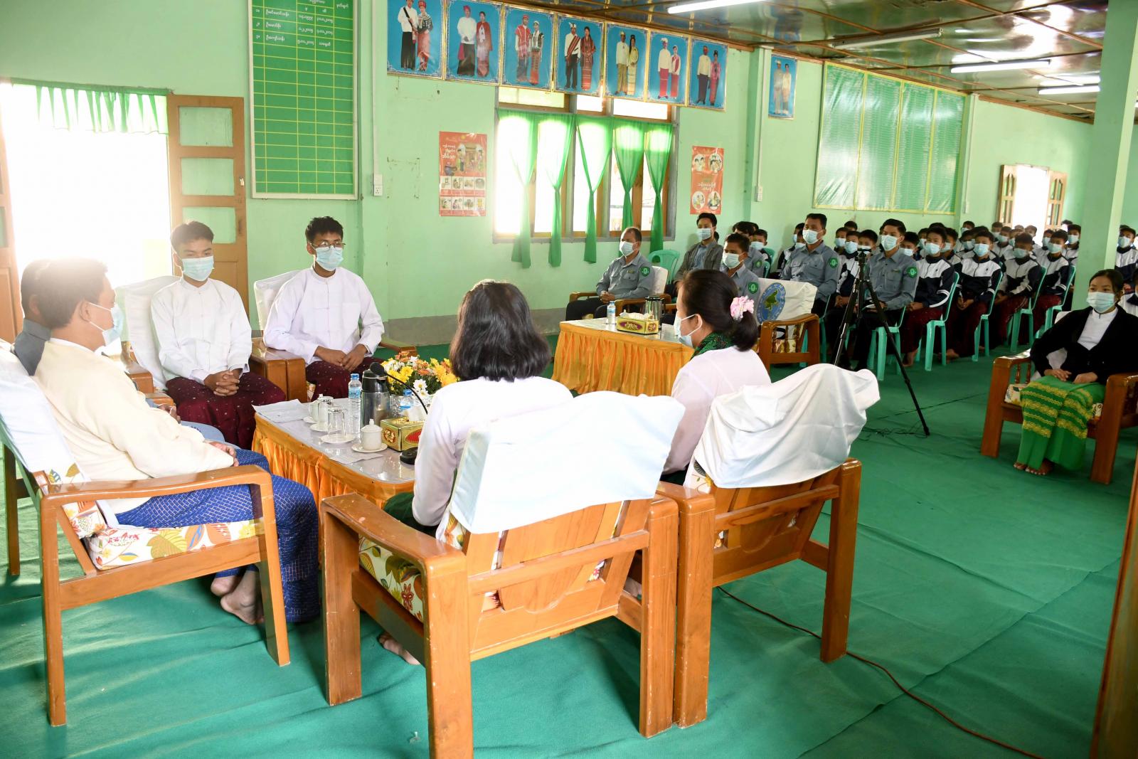 ဦးစွာ ပြန်ကြားရေးနှင့်ပြည်သူ့ဆက်ဆံရေးဦးစီးဌာန၊ စစ်တွေခရိုင်ရုံးမှ ဦးစီးအရာရှိ ဦးမြင့်စိုးကဦးဆောင် ဆွေးနွေးသူအဖြစ်ပါဝင်ဆောင်ရွက်ပြီး လူငယ်ဖွံ့ဖြိုးရေးသင်တန်းကျောင်း (စစ်တွေ)မှကျောင်း သား၊ ကျောင်းသူလေးများက စကားဝိုင်းဆွေးနွေးကြသည်။