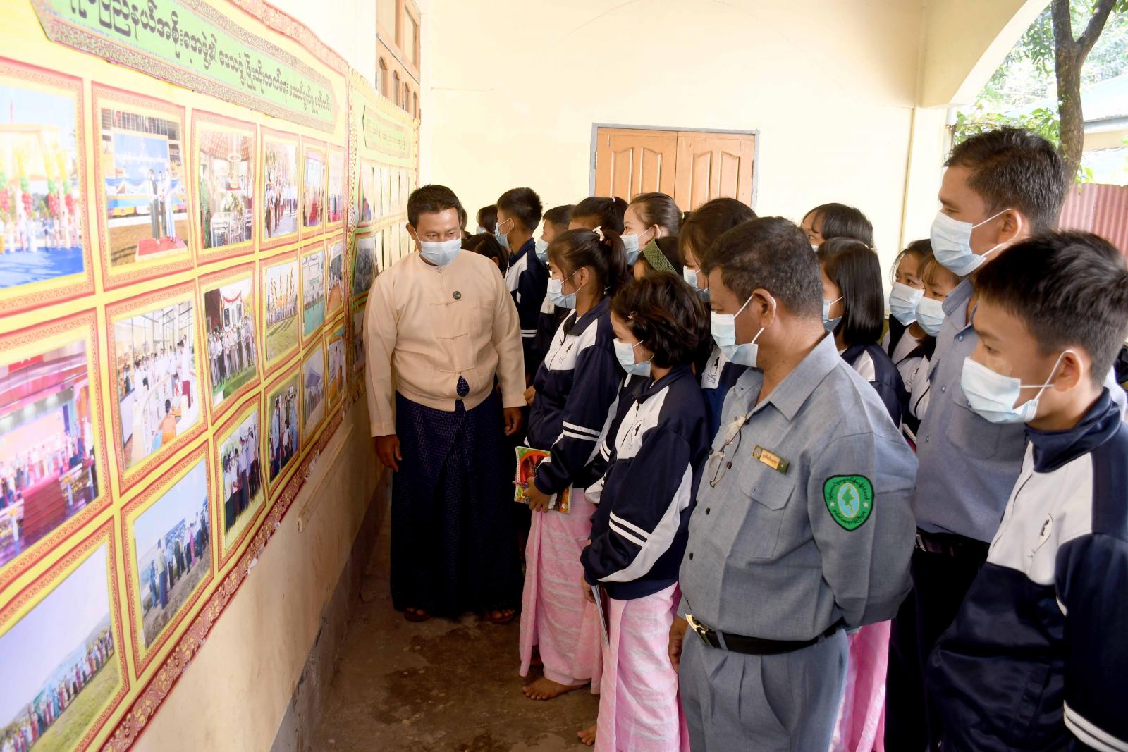 ထို့နောက် ကျောင်းသား၊ ကျောင်းသူများသည် ခန်းမရှေ့၌ ခင်းကျင်းပြသထားသော ရခိုင်ပြည်နယ် အစိုးရအဖွဲ့၏ ဒေသဖွံ့ဖြိုးတိုးတက်ရေးဆောင်ရွက်မှု မှတ်တမ်းဓာတ်ပုံများ၊ သဘာဝဘေး အန္တရာယ် အသိပညာပေး ဓာတ်ပုံ၊ နံရံကပ်စာစောင်များနှင့် စာအုပ်၊ စာပေများ အားလှည့်လည်ကြည့်ရှု ခဲ့ကြသည်။