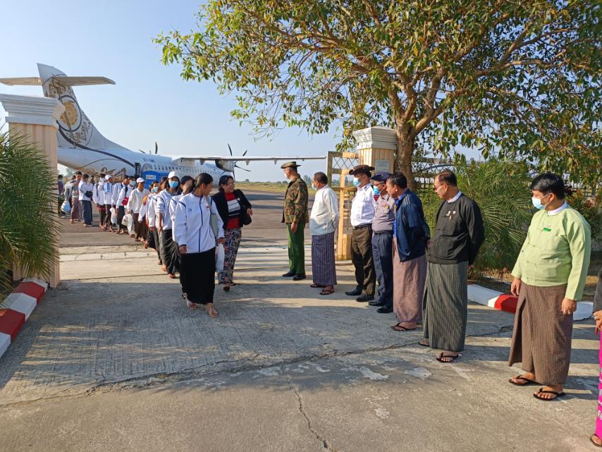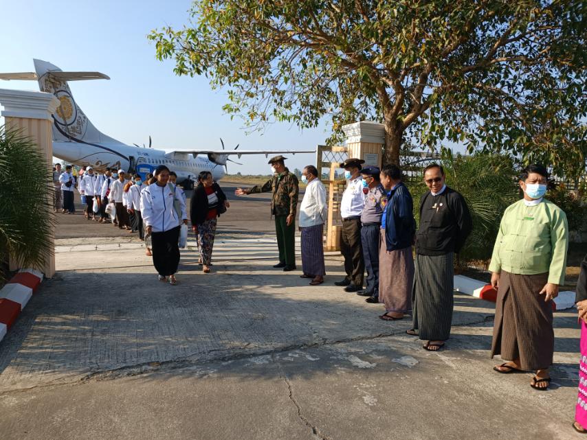 နေပြည်တော်တွင် ကျင်းပခဲ့သည့် (၇၅)နှစ် စိန်ရတုလွတ်လပ်ရေးနေ့ အခမ်းအနားတွင် ရခိုင်ပြည်နယ် ကိုယ်စားပြု ပါဝင်တင်ဆက်ကပြခဲ့ကြသည့် ပြည်နယ်ယဉ်ကျေးမှုအကအဖွဲ့သည် ယနေ့နံနက်ပိုင်းတွင် နေပြည်တော်မှ စစ်တွေမြို့သို့ ရောက်ရှိလာရာ ရခိုင်ပြည်နယ် အစိုးရအဖွဲ့ဝင်များ၊ ဌာနဆိုင်ရာ တာဝန်ရှိသူများက စစ်တွေလေဆိပ်တွင် ကြိုဆိုခဲ့ကြသည်။