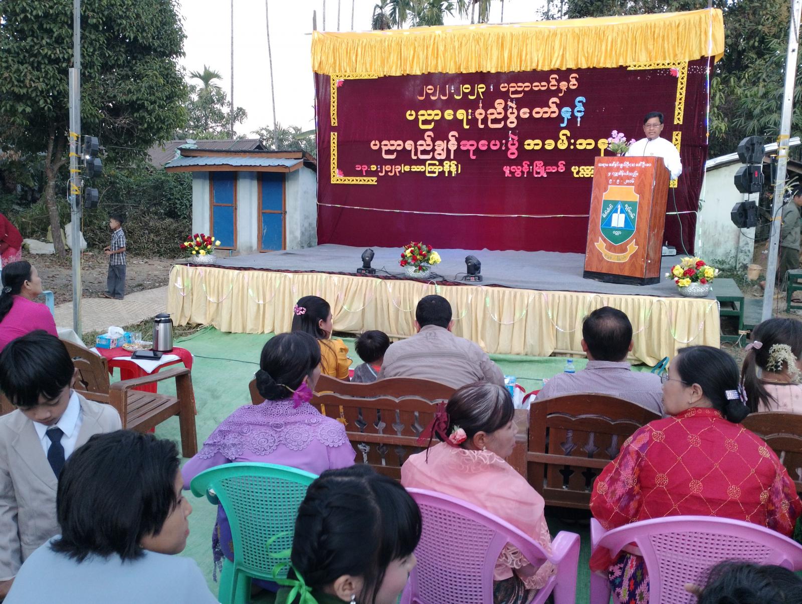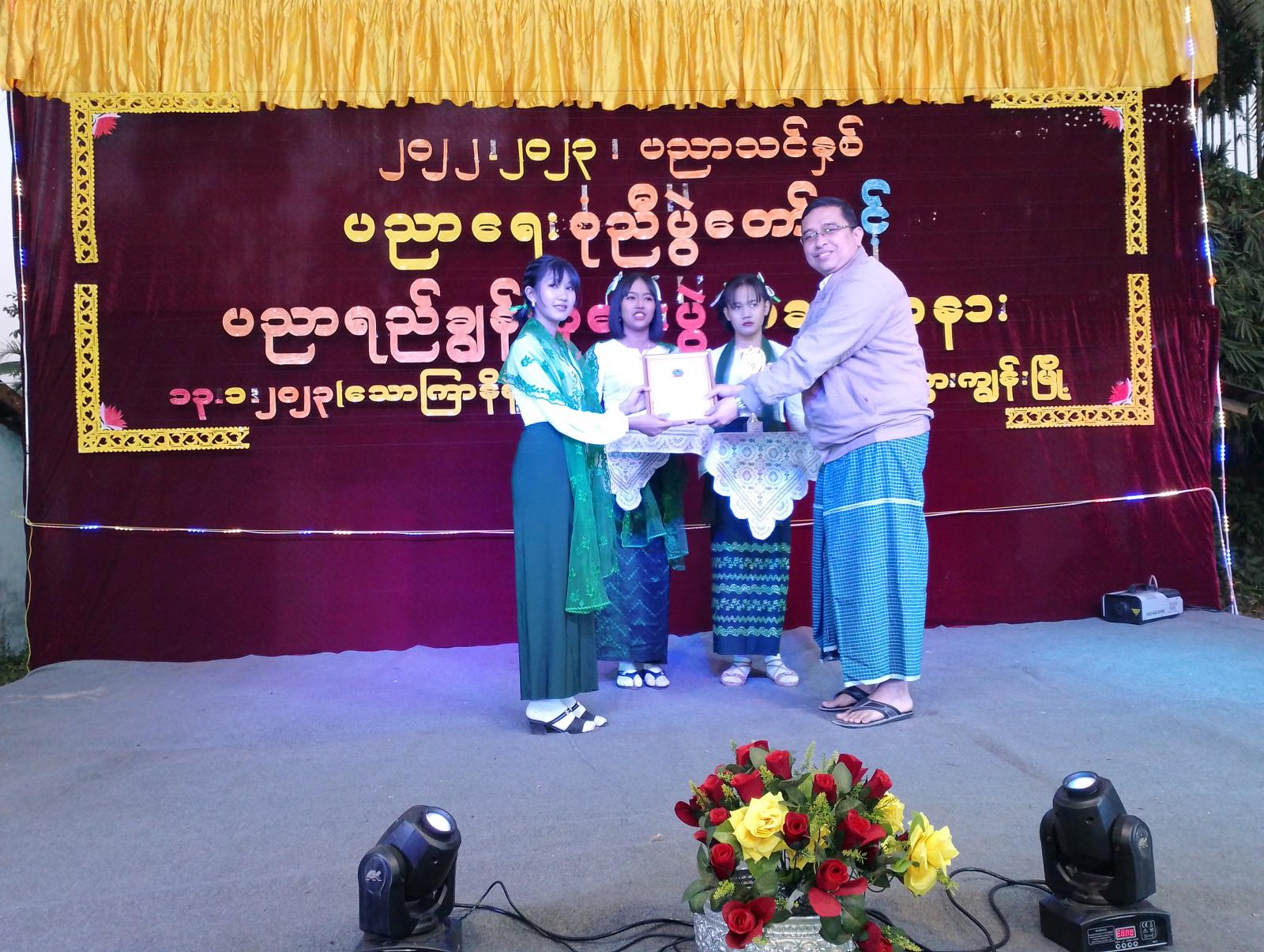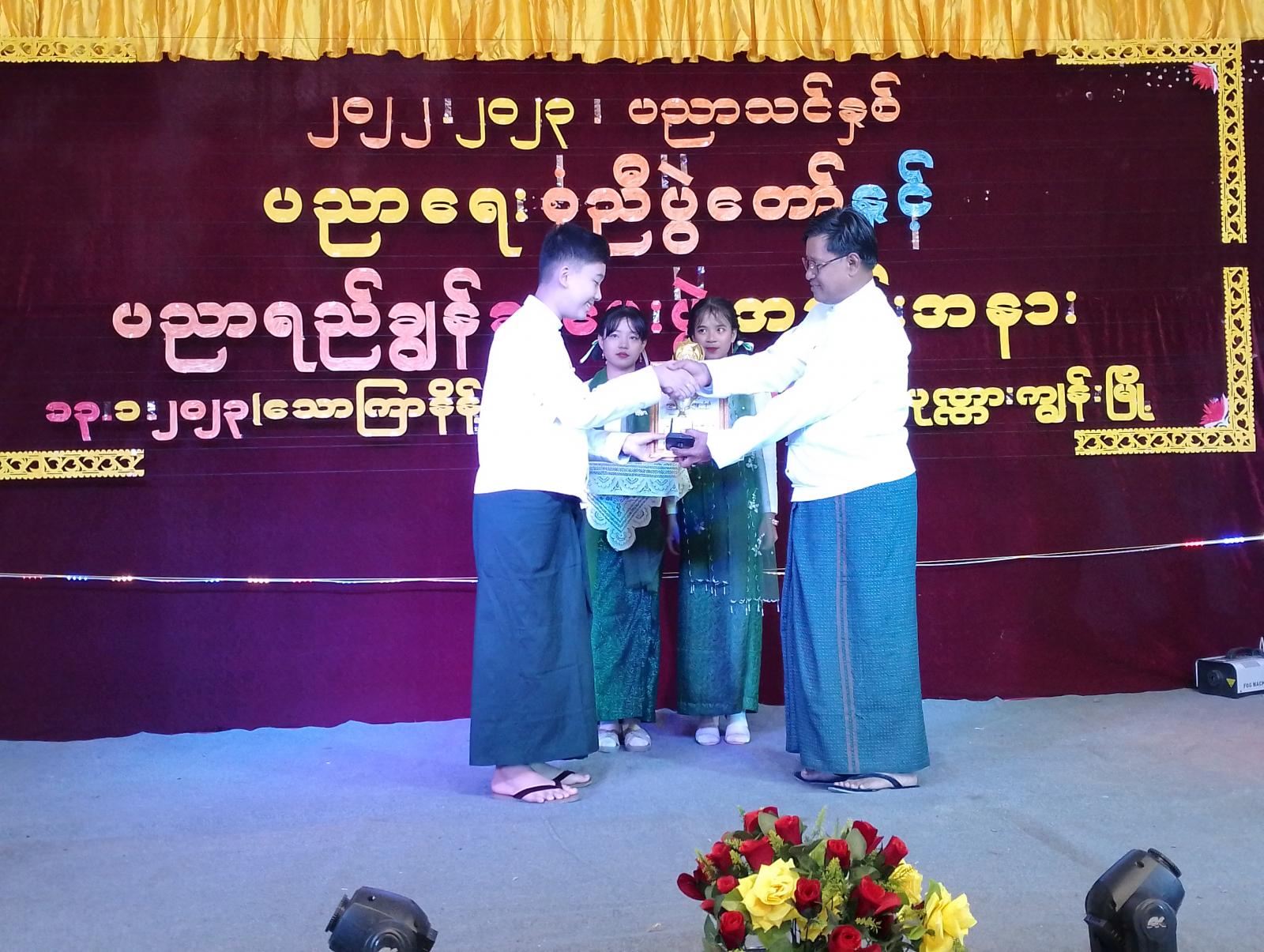 ထိုနောက် ၂၀၂၂-၂၀၂၃ ပညာသင်နှစ်အတွင်း ကဏ္ဍအသီးသီးတွင် မြို့နယ်အဆင့် ပညာရည်ချွန်ဆုရရှိခဲ့သော ကျောင်းသား/သူများအား မြို့နယ်ပညာရေးမှူး၊ ကျောင်းအုပ်ဆရာကြီးနှင့် တာဝန်ရှိသူတို့က ဆုများအသီးသီးချီးမြှင့်ပေးခဲ့ကြပြီး၊ ကျောင်းသား၊ ကျောင်းသူလေးများက ရိုးရာယိမ်း အကအလှများ၊ တေးသီချင်းအမျိုးမျိုးတို့ဖြင့် ကပြဖျော်ဖြေပေးခဲ့ကြကြောင်း သိရသည်။