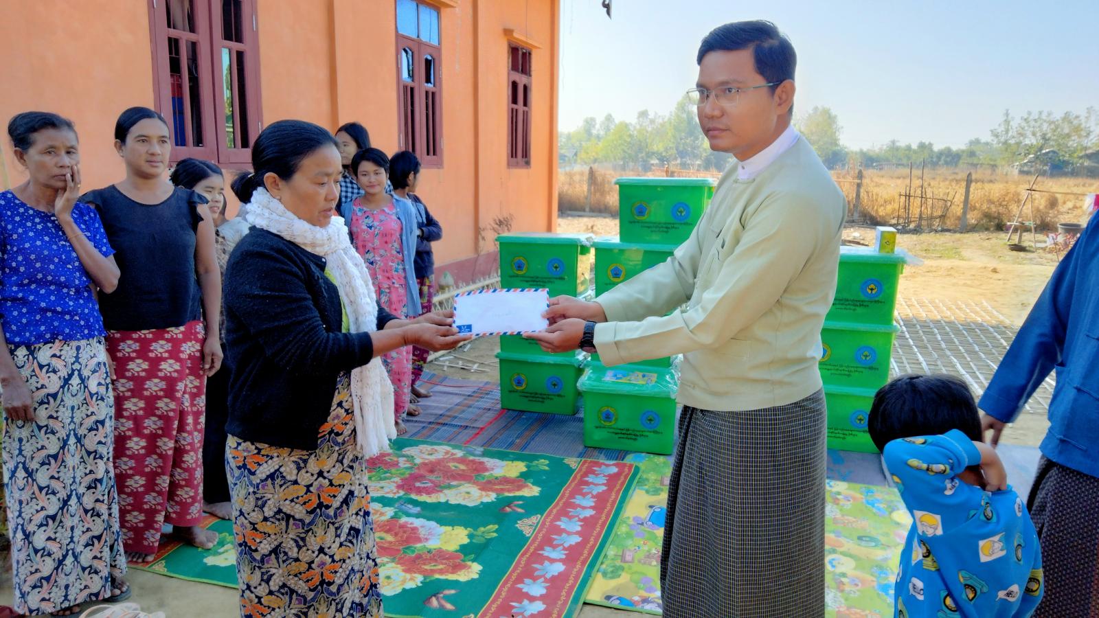 ရခိုင်ပြည်နယ်၊ ရသေ့တောင်မြို့နယ်တွင် (၃၀-၁၂-၂၀၂၂)ရက်နေ့တွင် ရသေ့တောင်မြို့နယ် အရှေ့မြောက်ရပ်ကွက် ပညာပါရမီကျောင်း၌ ဖြစ်ပွားခဲ့သည့် မီးဘေးကြောင့် ဘေးအန္တရာယ်ခံစားခဲ့ရသည့် ပြည်သူများအား ထောက်ပံ့ငွေနှင့် ပစ္စည်းများပေးအပ်ပွဲကို ယနေ့၊ နံနက်၁၀နာရီက ရသေ့တောင်မြို့၊ပညာပါရမီဘုန်းတော်ကြီးကျောင်း၌ ထောက်ပံခဲ့သည်။