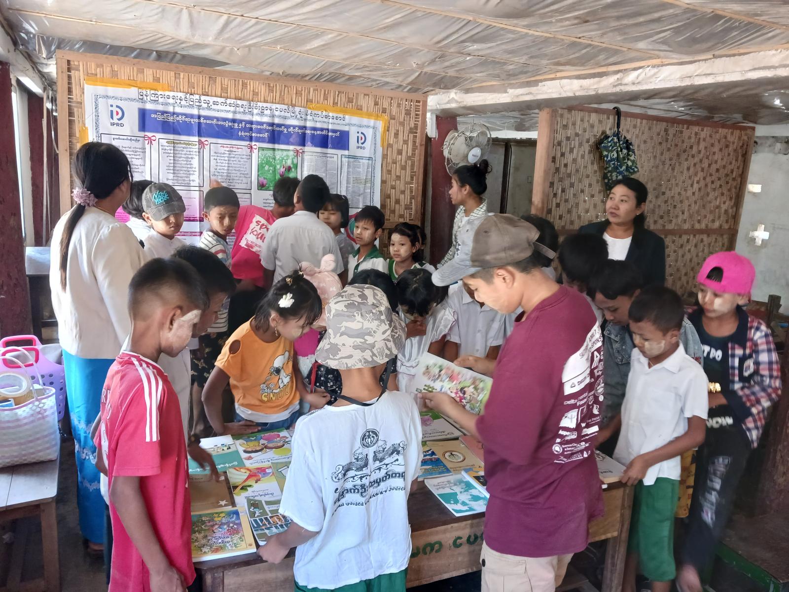 အဆိုပါကျောင်းသား၊သူများက အသိပညာပေးနံရံကပ်စာစောင်နှင့် စာအုပ်များပြသထားမှုအား စိတ်ဝင်တစား လေ့လာကြည့်ရှုခဲ့ကြကြောင်းသိရသည်။