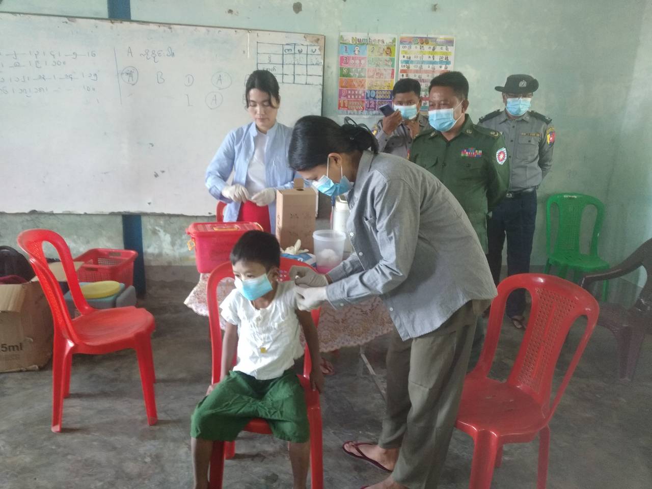 ရခိုင်ပြည်နယ်၊ စစ်တွေခရိုင်၊ ပေါက်တောမြို့နယ်အတွင်းရှိ အခြေခံပညာကျောင်းများတွင် ကိုဗစ်-၁၉ရောဂါကူးစက်ပြန့်ပွားမှု မဖြစ်ပေါ်စေရေးနှင့် ကျောင်းသား၊ ကျောင်းသူများ ကျန်းမာပျော်ရွှင်စွာ ပညာသင်ယူနိုင်ရေးအတွက် ကိုဗစ်-၁၉ရောဂါကာကွယ်ဆေး အကြိမ်ပြည့် ထိုးနှံပြီးစီးမှုကာလ (၅)လပြည့်ပြီးသော အသက် (၅) နှစ်မှ (၁၂)နှစ်အတွင်းရှိ ကျောင်းသူ၊ ကျောင်းသားများအား (Myancopharm)ကိုဗစ်- ၁၉ ရောဂါကာကွယ်ဆေး (Booster dose) ထိုးနှံပေးခြင်းကို ယနေ့နံနက်ပိုင်းက ပေါက်တောမြို့နယ်အတွင်းရှိ အခြေခံပညာကျောင်းများတွင် ဆက်လက်ထိုးနှံပေး လျက်ရှိကြောင်းသိရသည်။