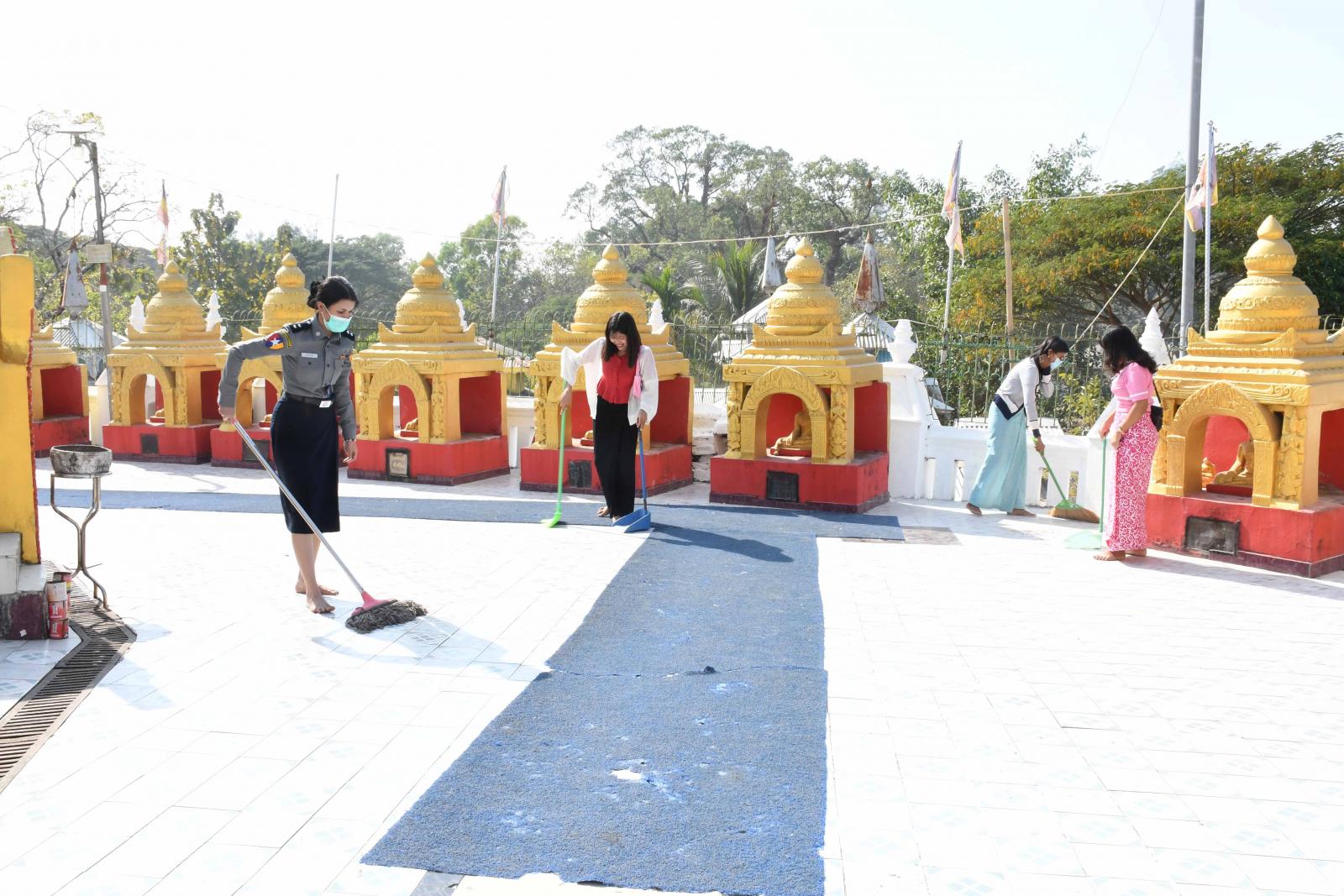 စစ်တွေမြို့၊ လက်ဝဲသလုံးတော်ဓာတ်စေတီတော်မြတ်ကြီး ပုရဝုဏ်အတွင်းအပြင် သန့်ရှင်း သာယာလှပရေးအတွက် ယမန်နေ့ နေ့လယ် ၂ နာရီက နယ်မြေခံတပ်မတော်သားများ၊ ဌာနဆိုင်ရာဝန်ထမ်းများ စုပေါင်းသန့်ရှင်းရေးဆောင်ရွက်ကြသည်။