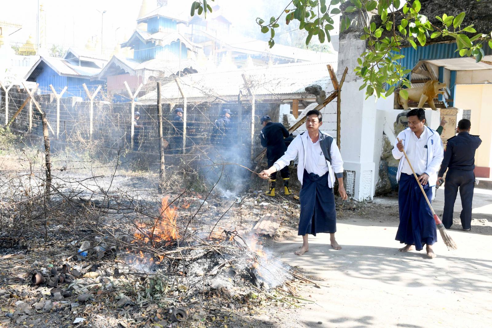 ထိုသို့ စုပေါင်းသန့်ရှင်းရေးဆောင်ရွက်နေမှုအား ပြည်နယ်ဝန်ကြီးများနှင့် တာဝန်ရှိသူများက သွားရောက်လှည့်လည်ကြည့်ရှုပြီး လိုအပ်သည်များကို သက်ဆိုင်ရာ တာဝန်ရှိသူများနှင့် ပေါင်းစပ်ညှိနှိုင်းပေးခဲ့ကြောင်း သိရသည်။