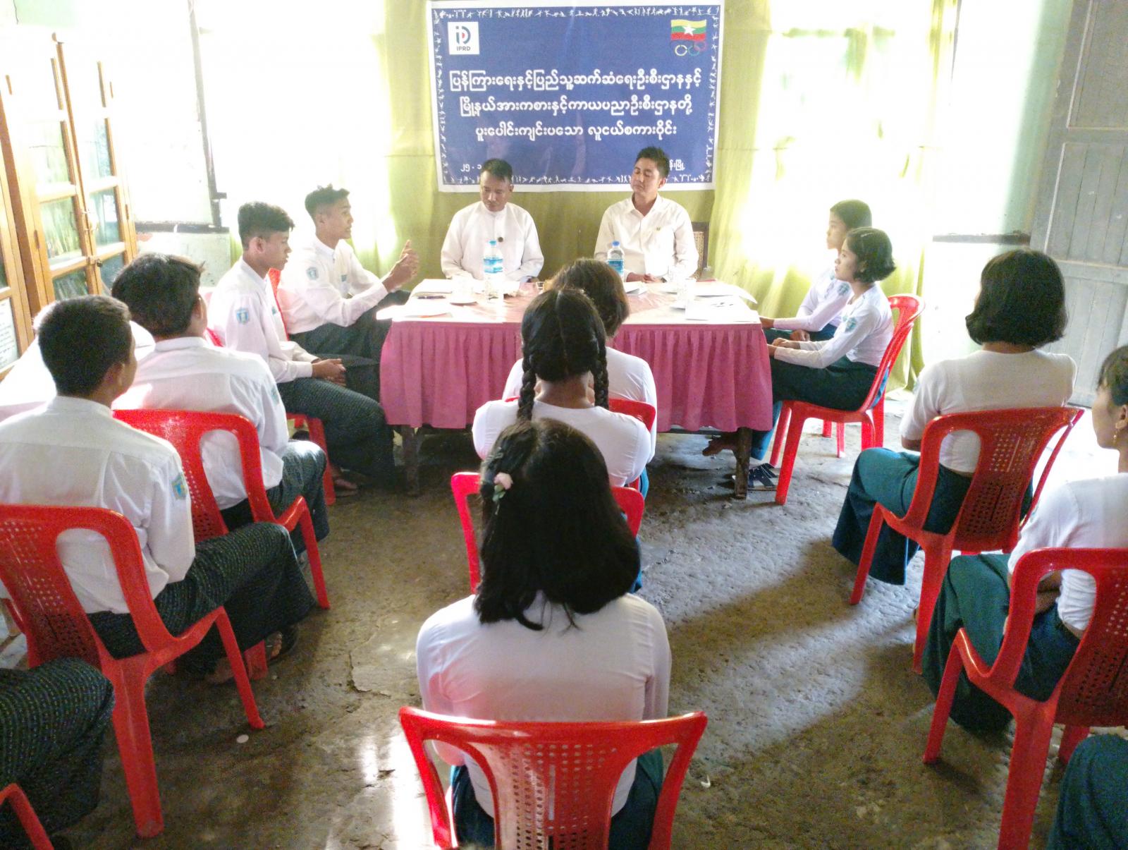 ဆွေးနွေးပွဲတွင် ပြန်ကြားရေးနှင့်ပြည်သူ့ဆက်ဆံရေးဦးစီးဌာနမှ မြို့နယ်ဦးစီးမှူး ဦးအောင်ဆွေက လူငယ်စကားဝိုင်းဆွေးနွေးပွဲကျင်းပရခြင်း၏ ရည်ရွယ်ချက်တို့ကိုရှင်းလင်းပြောကြားပြီး၊ အားကစားနှင့်ကာယပညာဦးစီးဌာနမှ မြို့နယ်ဦးစီးမှူးဦးခင်မောင်ဌေးက ကျောင်းသားလူငယ်များ ကျန်းမာသန်စွမ်းပြီးထူးချွန်ထက်မြက်သော အားကစားလူငယ်များပေါ်ထွန်းလာစေရန် လူငယ်နှင့်အားကစားခေါင်းစဉ်ဖြင့် ဆွေးနွေးကြရန်ပြောကြားသည်။