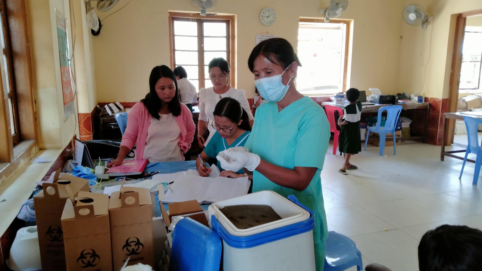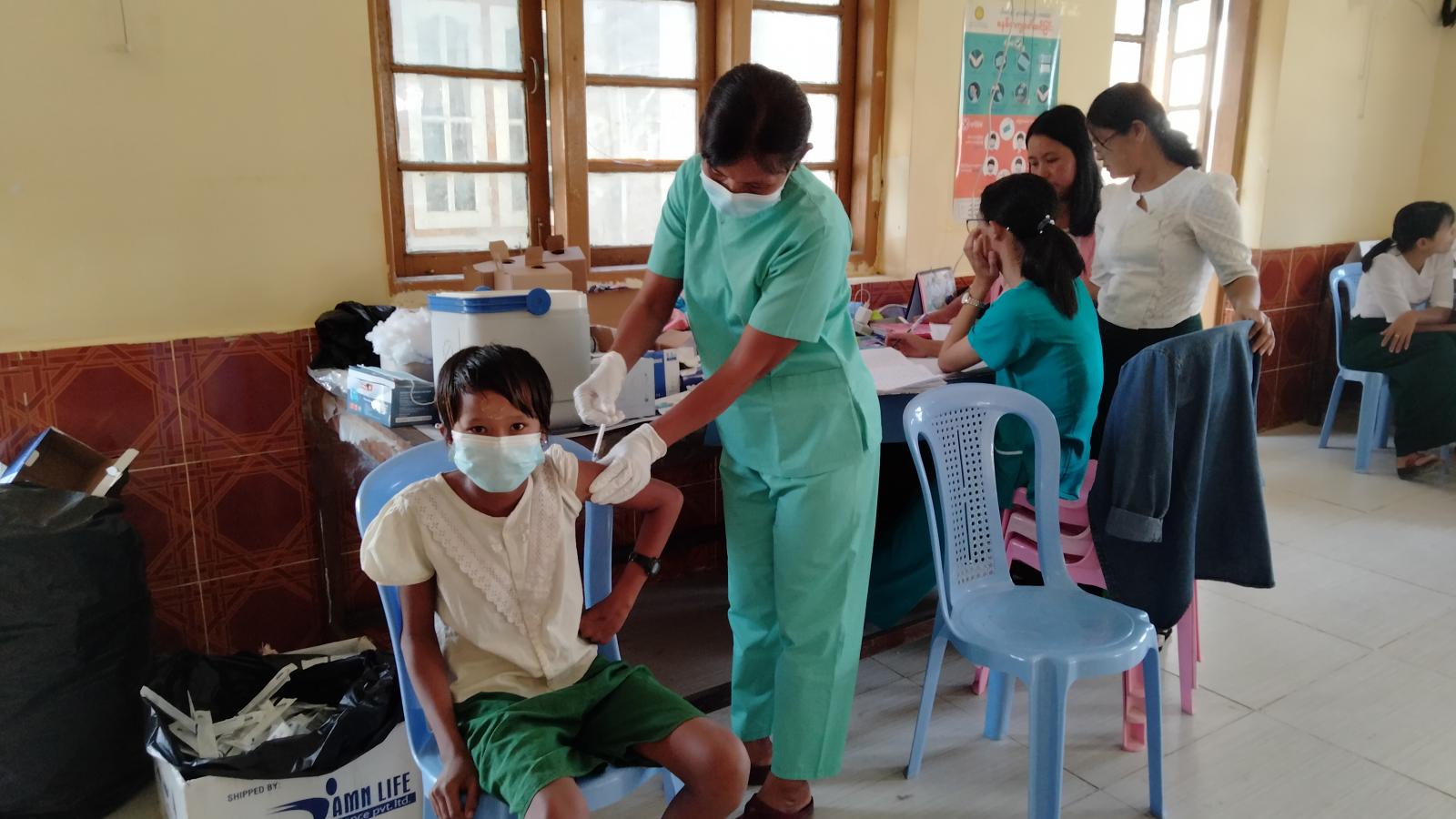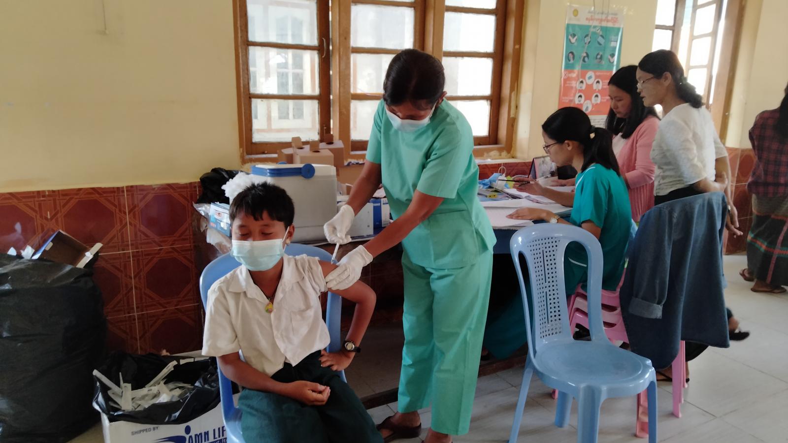 ထိုသို့ ကိုဗစ်ကာကွယ်ဆေး ထိုးနှံပေးရာတွင် ဆေးထိုးရန်ရောက်ရှိလာသော ကျောင်းသား၊ကျောင်းသူများအား ကျန်းမာရေးဝန်ထမ်းများမှ ကိုယ်ပူချိန်တိုင်းတာခြင်း၊ သွေးပေါင်ချိန်တိုင်းပေးခြင်းတို့ကို ဆောင်ရွက်ပြီးမှာသာလျှင် ဆေးကိုစနစ်တကျ ထိုးနှံပေးကြသည်။ ဆေးထိုးပြီးနောက် မိနစ် ၃၀ ခန့်အနားယူစေပြီး ကျောင်းသား၊ကျောင်းသူ ကလေးများအား ကျန်းမာရေးဝန်ထမ်းများက ကျန်းမာရေးစောင့်ရှောက်မှုများ ဆောင်ရွက်ပေးလျက်ရှိကြောင်း သိရသည်။
