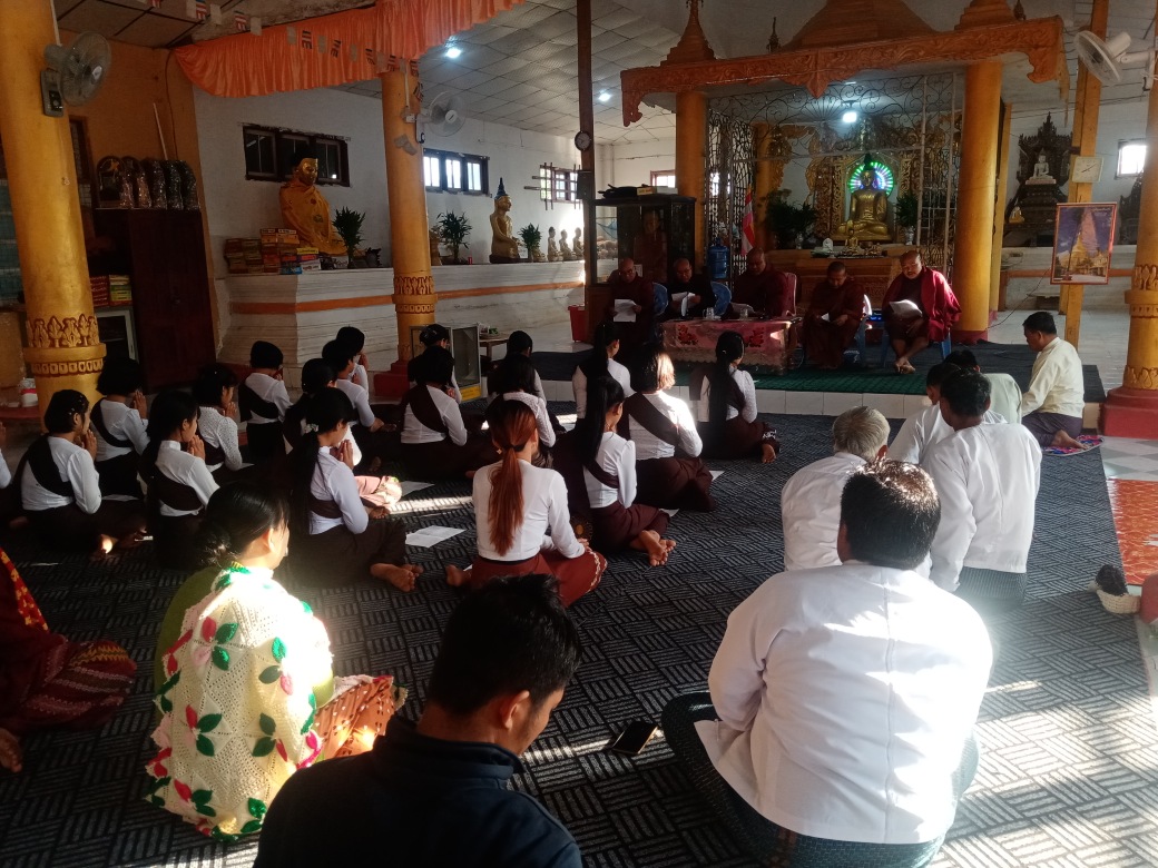 ဆက်လက်၍ ခရိုင်/မြို့နယ်စီမံအုပ်ချုပ်ရေးအဖွဲ့ အဖွဲ့ဝင်များနှင့် ဌာနဆိုင်ရာများက လှူဒါန်းဖွယ်ရာဆိုင်ရာများအား ပင့်ဆောင်သံဃာတို့ကို ဆက်ကပ်လှူဒါန်းခဲ့ကြပြီး ရေစက်သွန်းချ အမျှပေးဝေကာ "ဗုဒ္ဓသာသနံစိရံတိဋ္ဌတု"သုံးကြိမ်ရွတ်ဆိုကာ အခမ်းအနားကိုအောင်မြင်စွာပြီးမြောက်ကြောင်း သိရသည်။