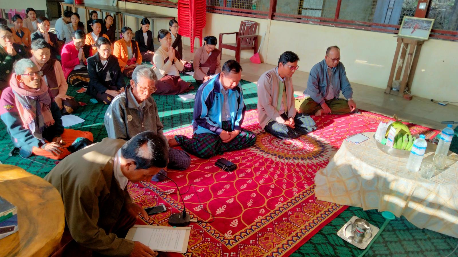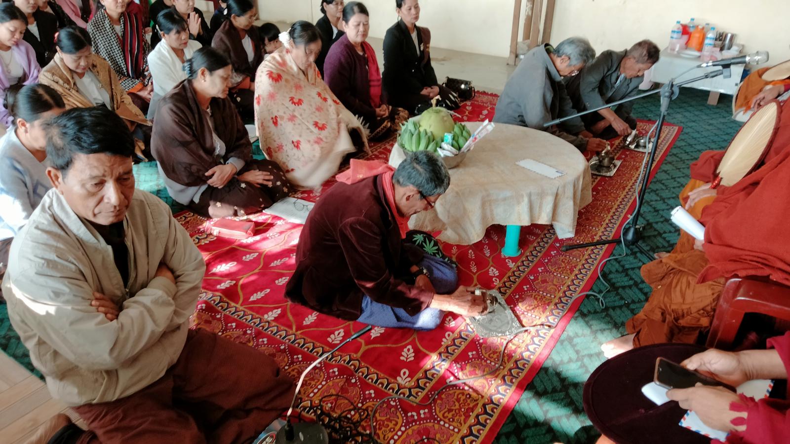 ရှေးဦးစွာ အခမ်းအနားသို့ မြို့နယ်စီမံအုပ်ချုပ်ရေးအဖွဲ့ ဥက္ကဋ္ဌ ဦးနိုင်လင်းထက်နှင့် အဖွဲ့ဝင်များ၊ တက်ရောက်လာကြသူများက နမောတ ဿသုံးကြိမ်ရွတ်ဆို၍ အခမ်းအနားကို ဖွင့်လှစ်ပေးခဲ့ကြသည်။ ထို့နောက် စေတီယဂ်ဏကျောင်းဆရာတော် ဦးပညာသာမိထံမှ ငါးပါးသီလခံယူဆောက်တည်ကြပြီး ဆရာတော် သံဃာတော်များ ရွတ်ဖတ်ပူဇော်အပ်သော ဓဇဂ္ဂသုတ်ပရိတ်ပါဠိ တော်များနှင့် အပြင်အောင်ခြင်းရှစ်ပါး၊ အတွင်းအောင်ခြင်းရှစ်ပါးကို နာယူကြပြီးဝတ်ရွတ်အသင်းကလည်း အပြင်အောင်ခြင်းရှစ်ပါးမြန်မာပြန်နှင့် ဓဇဂ္ဂသုတ်ပရိတ်ပါဠိတော်များ ရွတ်ဖတ်ပူဇော်ခဲ့ကြသည်။