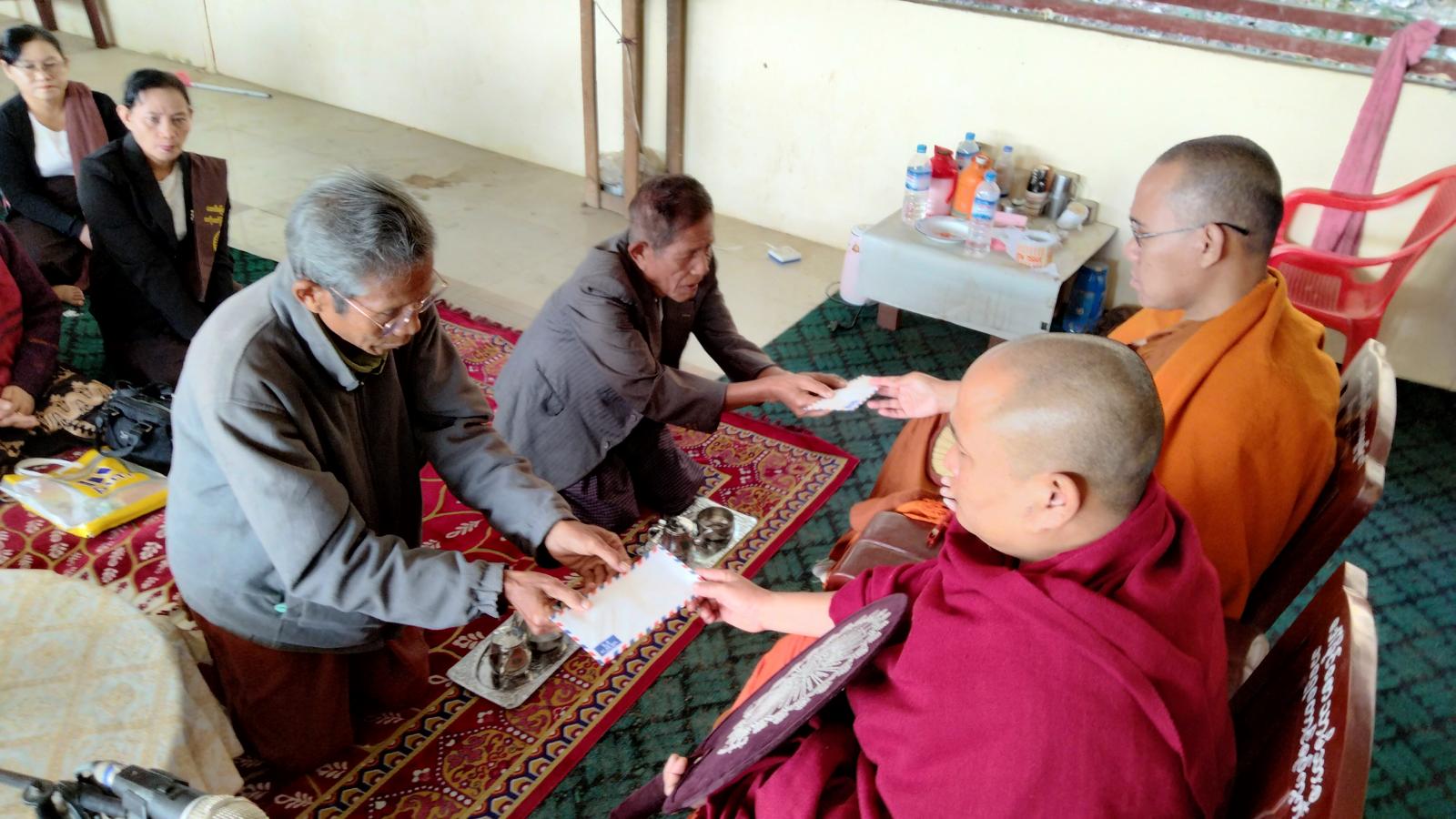 ဆက်လက်၍ မြို့နယ်စီမံအုပ်ချုပ်ရေးအဖွဲ့ ဥက္ကဋ္ဌ ဦးနိုင်လင်းထက်နှင့် အဖွဲ့ဝင်များက လှူဖွယ်ဝတ္ထုပစ္စည်းများ ဆက်ကပ်လှူဒါန်းပြီး လှူဒါန်းမှု အစုစုတို့အတွက် ရေစက်သွန်းချ အမျှပေးဝေကြပြီးအခမ်းအနားကို ဗုဒ္ဓသာသနံစိရံတိဋ္ဌတု သုံးကြိမ်းရွတ်ဆို၍အခမ်းအအနားကို အောင်မြင် စွာရုပ်သိမ်းလိုက်ကြောင်းသိရသည်။