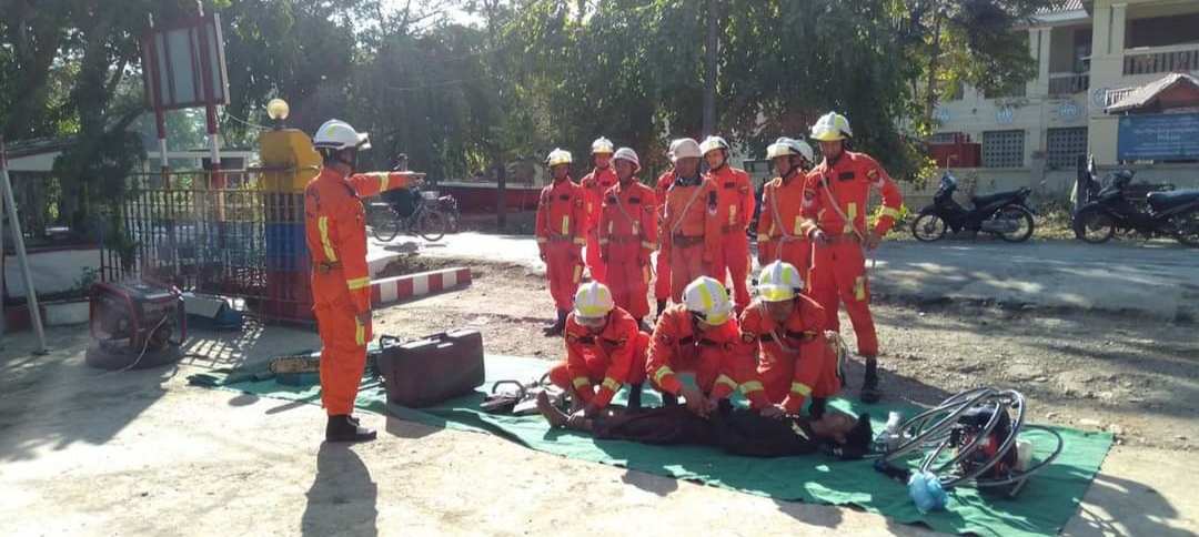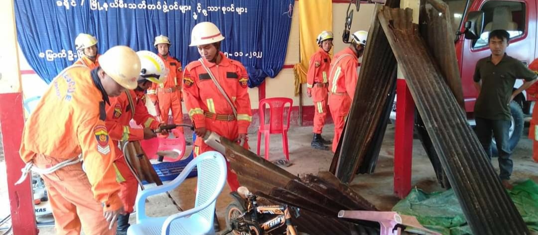ယင်းသို့ သဘာဝဘေးကြိုတင်ကာကွယ်ရေးတွင် ခရိုင်မီးသတ်ဦးစီးဌာနမှ လက်ထောက်ညွှန်ကြားရေးမှူး ဦးခိုင်ဇော်ဟိန်း ကြီးကြပ်မှုဖြင့် ရှာဖွေကယ်ဆယ်ရေးမီးသတ်တပ်ဖွဲ့များမှ အထောက်အကူပြုပစ္စည်းများဖြင့် ငလျင်ဘေး၊ မုန်တိုင်းဘေးအန္တရာယ်များ မတော်တဆကျ ရောက်လာပါက အချိန်မီရှာဖွယ်ကယ်ဆယ်ရေးနှင့် ကူညီရေးလုပ်ငန်းများ လက်တွေ့ဆောင်ရွက်တတ်စေရန် ရည်ရွယ်ချက်ဖြင့် သဘာဝဘေးအန္တရာယ်ကြိုတင်ကာကွယ်ရေး သရုပ်ဖော်ပြခြင်းနှင့် ဇာတ်တိုက်လေ့ကျင့်ခြင်းများ၊ အဆောက်အဦးများရှိ ဒဏ်ရာရရှိသောလူနာများအား ရှာဖွေကယ်ဆယ်ခြင်း၊ ရှေးဦးလူနာပြုစုနည်းတို့ဖြင့် ဇာတ်တိုက်လေ့ကျင့်လျက်ရှိကြောင်း သိရသည်။