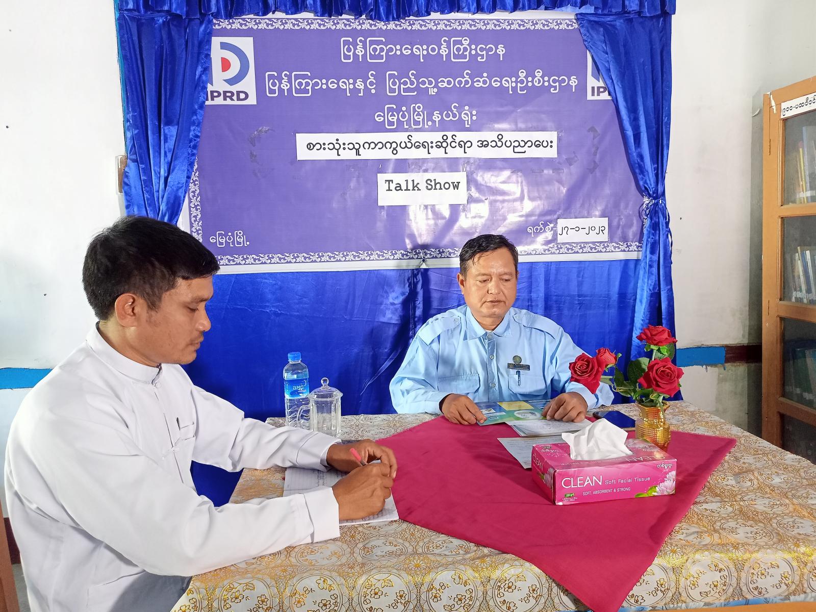 ရခိုင်ပြည်နယ်၊ မြောက်ဦးခရိုင်၊ မြေပုံမြို့နယ်၊ ပြန်ကြားရေးနှင့်ပြည်သူ့ဆက်ဆံရေးဦးစီးဌာန Community Centre ခန်းမ၌ ယနေ့ နေ့လ(၁)နာရီအချိန်က ပြန်ကြားရေးနှင့်ပြည်သူ့ဆက်ဆံရေးဦးစီးဌာနနှင့် မြို့နယ်စားသုံးသူရေးရာဦးစီးဌာနတို့ပူးပေါင်း၍စားသုံးသူကာကွယ် ရေးဆိုင်ရာ အသိပညာပေး Talk Show စကားဝိုင်းပြုလုပ်သည်။