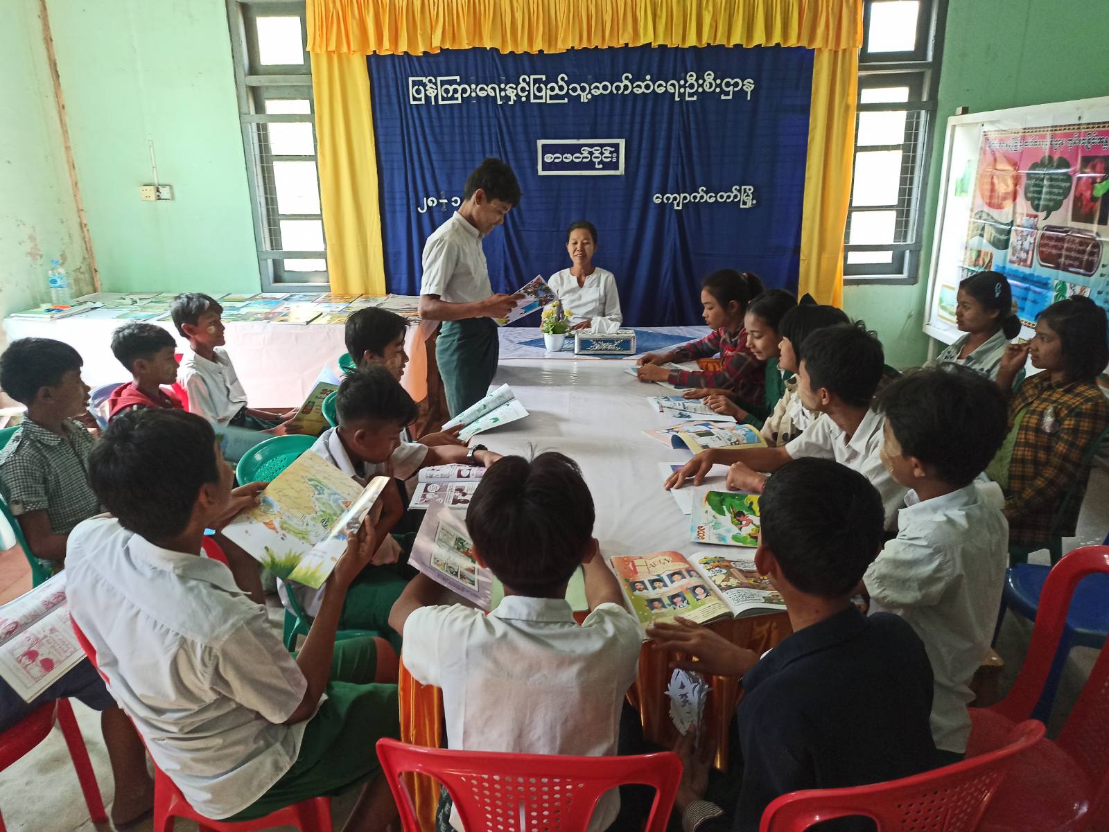 ရှေးဦးစွာ ပြန်ကြားရေးနှင့်ပြည်သူ့ဆက်ဆံရေးဦးစီးဌာနမှ ဒုတိယဦးစီးမှူး ဒေါ်အေးမြသန်းက ကျောင်းသားလူငယ်များ အသိပညာ ဗဟုသုတများ တိုးပွားလာစေရန် ရည်ရွယ်ချက်တို့ဖြင့် စာဖတ်ဝိုင်း ပြုလုပ်ရခြင်းဖြစ်ကြောင်း ရှင်းလင်းပြောကြားခဲ့သည်။