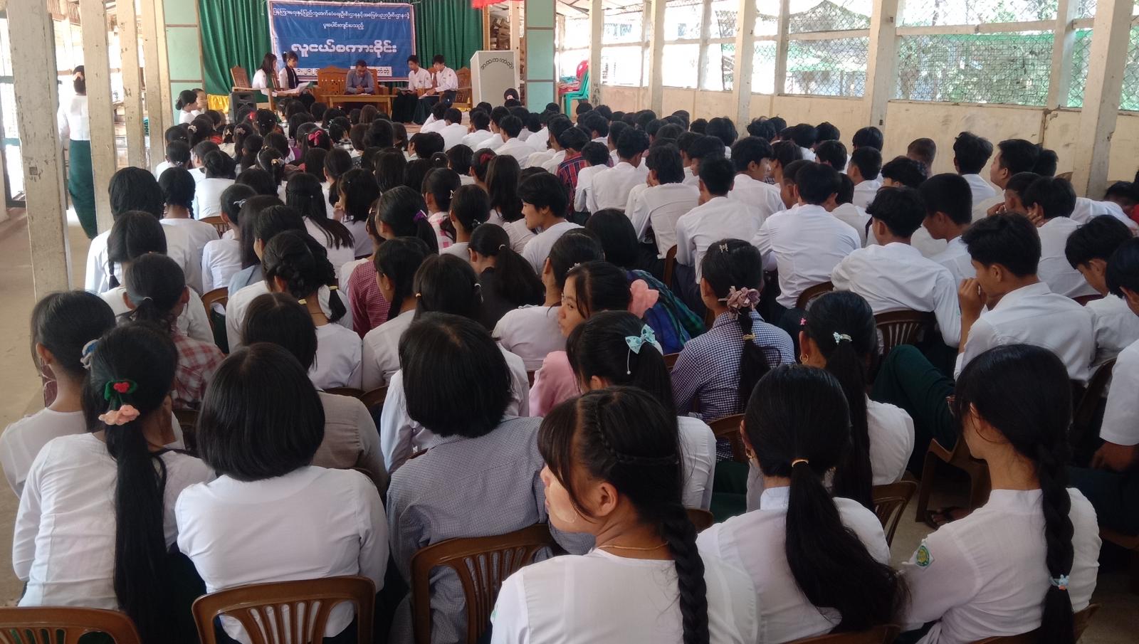 ယင်းနောက် တက်ရောက်လာကြသည့် ကျောင်းသား၊ ကျောင်းသူများက မိမိတို့သိရှိလိုသည်များ မေးမြန်းဆွေးနွေးရာ ဦးဆောင်ဆွေးနွေး သူများက ပြန်လည်ရှင်းလင်းဆွေးနွေးကြပြီး အ.ထ.က(ကံဘဲ့) ကျောင်းအုပ်ဆရာမကြီး ဒေါ်ခင်ခင်သောင်းက ကျေးဇူးတင်စကား ပြန်လည် ပြောကြားခဲ့သည်။