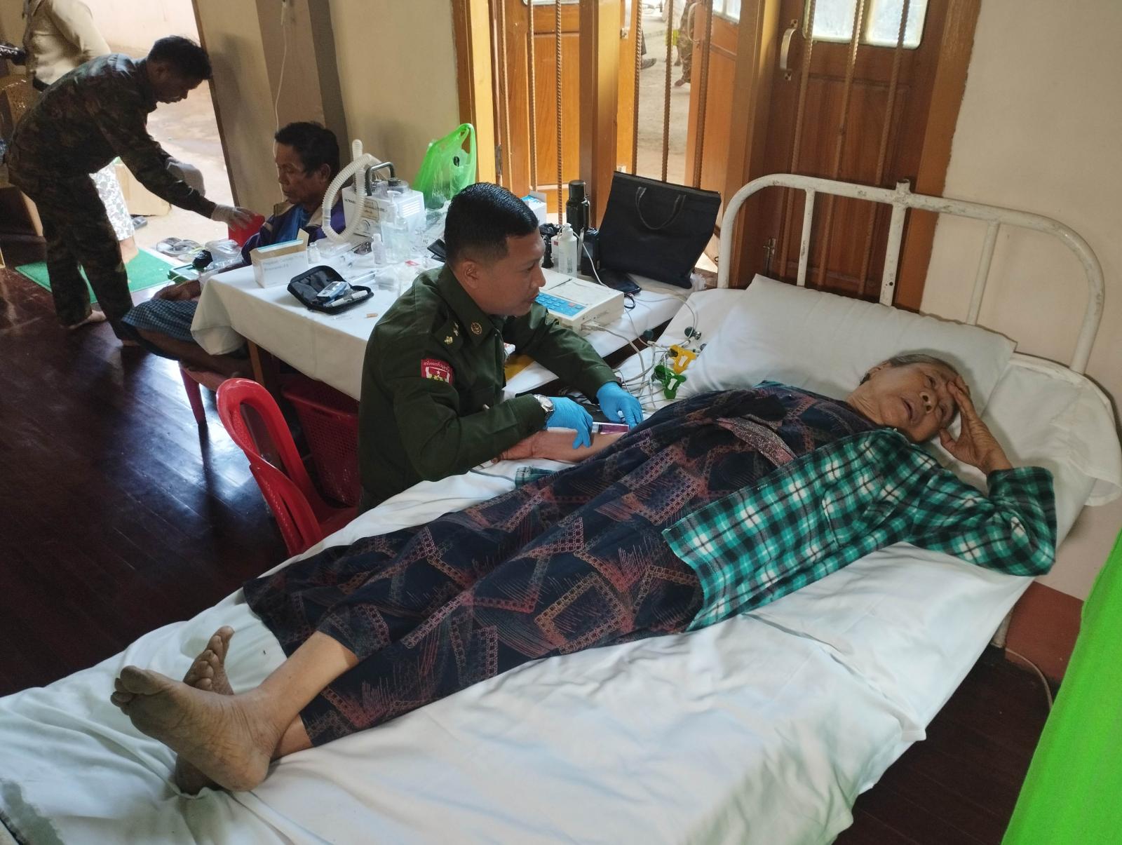 ဖော်ပြပါ ကျန်းမာရေးစောင့်ရှောက်မှုကို အနောက်ပိုင်းတိုင်းစစ်ဌာနချုပ်၊ အမှတ်(၂) တပ်မတော်ဆေးရုံ ကုတင်(၃၀၀)မှ အထွေထွေရောဂါကုသမားတော် ဗိုလ်ကြီးအောင်မြင့်မြတ်က ဦးဆောင်၍ ပါရဂူများ၊ ဆေးမှူးများ၊ သူနာပြုများပါဝင်သောဆေးအဖွဲ့မှ ကွင်းဆင်းဆောင်ရွက်ခဲ့ခြင်းဖြစ်သည်။ ထိုသို့ အခမဲ့ဆေးဝါးကုသခြင်းများ ဆောင်ရွက်ခြင်းများကို ဇန်နဝါရီ ၃၀ ရက်နေ့မှ ဖေဖော်ဝါရီ ၁ ရက်နေ့ ယနေ့နံနက်ပိုင်းအထိ မျက်စိရောဂါ၊ သွားရောဂါ၊ ကလေးရောဂါ၊ နား နှာခေါင်း လည်ချောင်းရောဂါ၊ ခွဲစိပ်ရောဂါနှင့် အခြားအထွေထွေရောဂါလူနာများအား လိုအပ်သည့်ဆေးဝါးကုသမှုများဆောင်ရွက်ပေးပြီး ECG နှင့် အမ်ထရာဆောင်းတို့ဖြင့် ရောဂါရှာဖွေစမ်းသပ်ပေးခြင်းများ ဆောင်ရွက်ပေးခဲ့ရာ ဇန်နဝါရီ ၃၀ ရက်နေ့တွင် ၂၉၄ ဦး၊ ၃၁ ရက်နေ့တွင် ၄၅၂ ဦးနှင့် ယနေ့နံက်ပိုင်းတွင် ၁၂၆ ဦး စုစုပေါင်း ၈၇၂ ဦးတို့အား ကျန်းမာရေးစောင့်ရှောက်မှုများ ပေးနိုင်ခဲ့သည်။