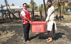 ရခိုင်ပြည်နယ်၊ မောင်တောမြို့နယ် မြို့မတောင်ရပ်ကွက်၊ ဖေဇီရွာ၌ ဇန်နဝါရီ ၃၀ ရက်နေ့က နေအိမ်မီးလောင်ဆုံးရှုံးခဲ့သည့် အိမ်ထောင်စုများအား ယနေ့နံနက် ၁၀ နာရီအချိန် မြန်မာနိုင်ငံကြက်ခြေနီတပ်ဖွဲ့မှ ထောက်ပံ့ပစ္စည်းများပေးအပ်ခဲ့သည်။
