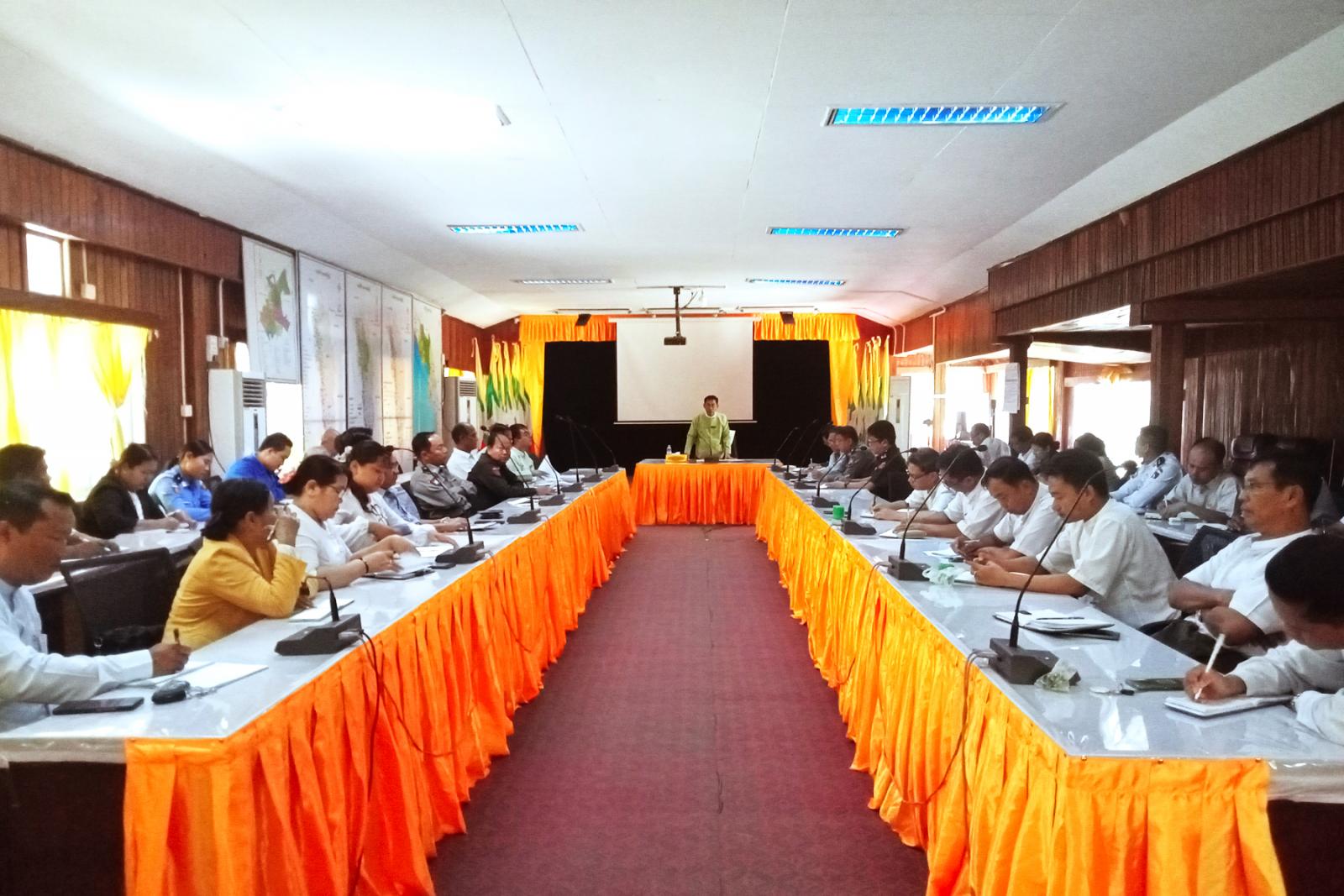 ရှေးဦးစွာ ခရိုင်စီမံအုပ်ချုပ်ရေးအဖွဲ့ ဥက္ကဋ္ဌ ဦးမျိုးချစ်က (၇၆)နှစ်မြောက်ပြည်ထောင်စုနေ့ စည်ကားသိုက်မြိုက်စွာကျင်းပနိုင်ရေး အမှာစကားပြောကြားသည်။ ထို့နောက် အခမ်းအနားမှူးက လုပ်ငန်းကော်မတီများဖွဲ့စည်းတာဝန်ခွဲဝေပေးထားမှုအခြေအနေများကို ရှင်းလင်းတင်ပြခဲ့သည်။ ဆက်လက်၍ အစည်းအဝေးတက်ရောက်လာသူများက အခမ်းအနားတွင်ထည့်သွင်းဆောင်ရွက်မည့် လုပ်ငန်းများကို ဆွေး နွေးတင်ပြကြသည်။