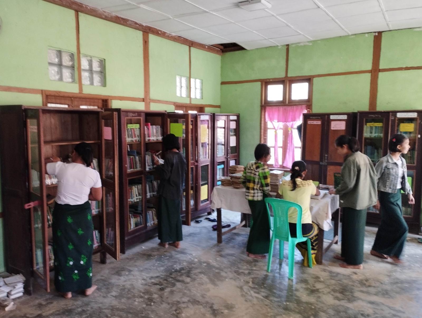 ထိုသို့ ပြည်သူ့စာကြည့်တိုက်မှ စာအုပ်စာစောင်များ ငှားရမ်းပေးခြင်းနှင့်ပတ်သက်၍ အဆိုပါစာကြည့်တိုက်ဝန်ထမ်း ဒေါ်လွင်လွင်ပြုံးက “စာကြည့်တိုက်ကို အပတ်စဉ် အင်္ဂါနေ့မှ စနေနေ့အထိ နံနက်(၉)နာရီမှ ညနေ(၄) နာရီ (၃၀)မိနစ်ထိ ဖွင့်လှစ်ထားရှိပါကြောင်း၊ အသင်းဝင်တစ်ဦးကို တစ်ကြိမ်လျှင် စာအုပ်(၂)အုပ်ငှားရမ်းနိုင်ပါကြောင်း၊ အသင်းဝင်သည်ဖြစ်စေ၊ မဝင်သည်ဖြစ်စေ မည်သူမဆို စာကြည့်တိုက်အတွင်း၌ စင်တင်ထားသည့်စာအုပ်များကို စာကြည့်တိုက်ဖွင့်ချိန်မှ ပိတ်ချိန်အထိ လွတ်လပ်စွာဖြင့် (အခမဲ့)ဖတ်ရှုနိုင်သကဲ့သို့ ပြသထားသောရုပ်သံအစီအစဉ်များကိုလည်း ကြည့်ရှုနိုင်ပါကြောင်း၊ စာကြည့်တိုက်အသင်းကို လူမျိုးမရွေး၊ ဘာသာမရွေး၊ အဆင့်အတန်းမရွေး၊ လူကြီးလူငယ်မရွေး၊ ကျား/မ မရွေးအသင်းဝင်ရောက်နိုင်ပြီး စာအုပ်များကို(အခမဲ့)ငှားရမ်းဖတ်ရှုနိုင်ပါကြောင်း ပြောကြားခဲ့သည်။
